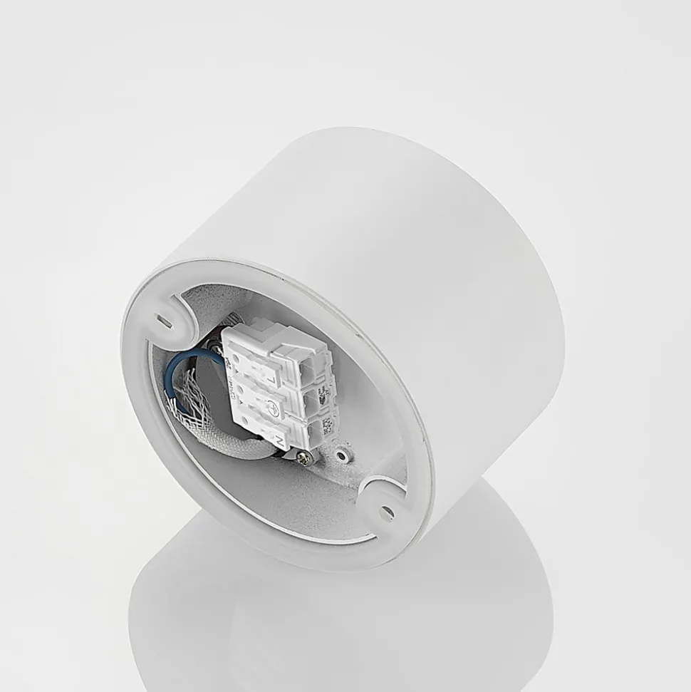 Rund Nieva downlight med hvit finish og skruefri tilkoblingsklemme Denne downlighten med sin kompakte design er en av de mest allsidige taklampene for kjøkken, korridorer og andre rom i både private og kommersielle miljøer. Designet fremstår som svært tidløst og enkelt, slik at den passer inn i mange stilarter. Taklampen med den nedadrettede lysstrålen er rund og har en hvit overflate som alltid fremstår harmonisk og utstråler moderne eleganse. Downlighten med den sylindriske formen har også en hurtigkoblingsklemme som gjør det mulig å koble til ledningene uten skruer, slik at installasjonen kan utføres raskt, sikkert og uten verktøy.