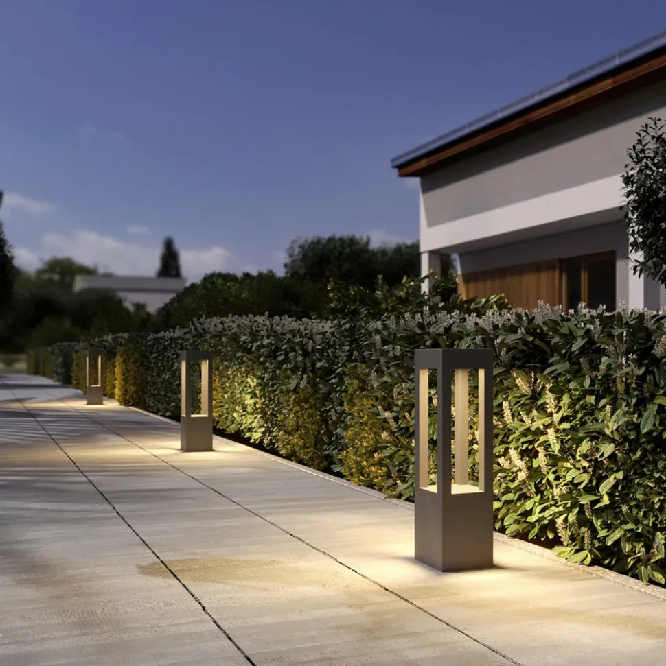 Stilfull Lienna LED-pullertlampe i mørkegrå aluminium LED-pullertlampen er et diskret og moderne alternativ til utendørsbelysning. Den geometriske formen omgir en fastmontert LED-modul, som skaper det rette lyset for en sti i hagen. Den diskrete, mørkegrå fargen kan integreres i hagens eller uteplassens dekor uten å forstyrre den øvrige stilen. Takket være kapslingsgraden IP65 er Lienna LED-pullertlampen støvtett og beskyttet mot vannstråler, noe som betyr at den tåler vær og vind utendørs. Så hvis du er på utkikk etter en attraktiv og praktisk utelampe, har du kommet til rett sted.