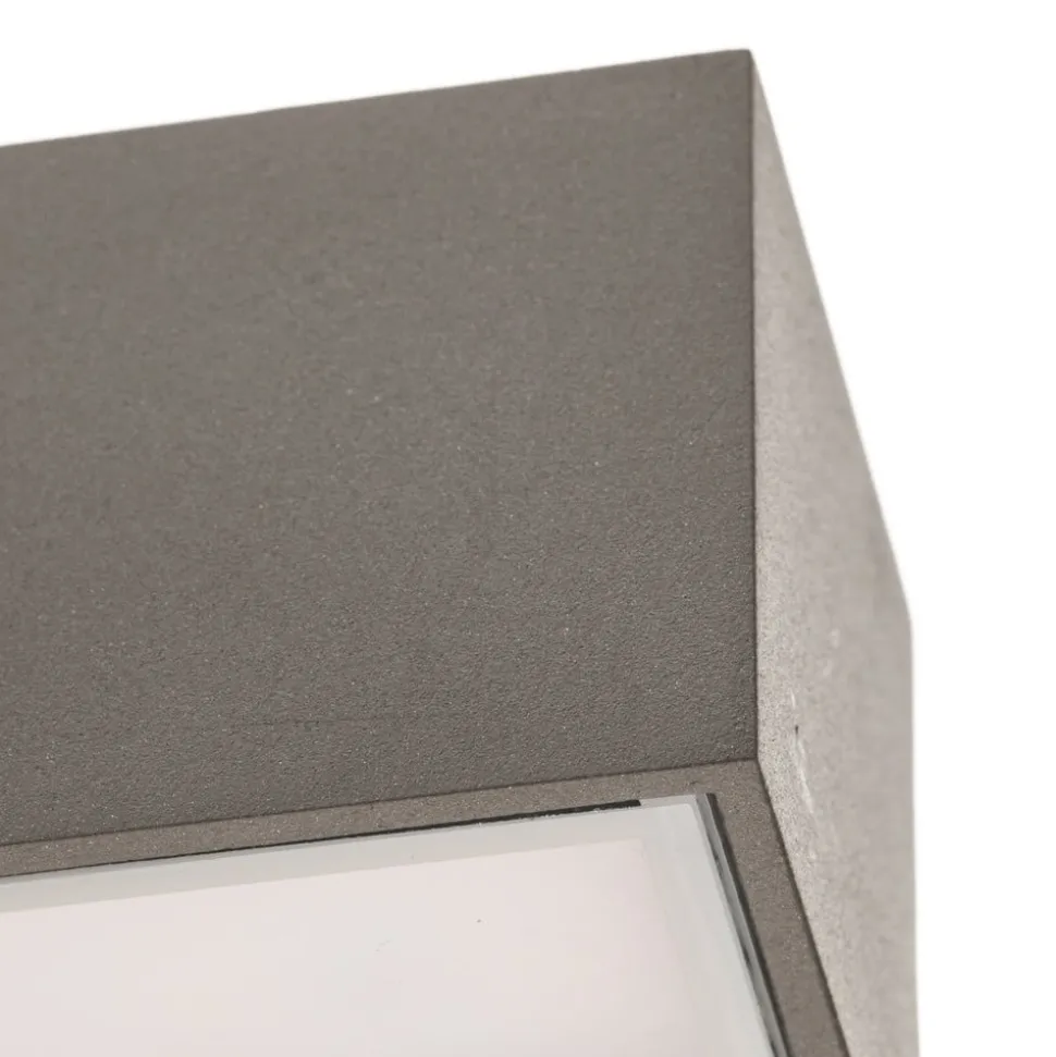 Smal Lengo LED utendørs vegglampe i støpt aluminium Lengo LED utendørs vegglampe sender lyset direkte nedover, slik at betrakteren ikke blir blendet. Dette skaper en vakker effekt på husveggen, som ser innbydende ut og kan belyse området godt takket være de kraftige lysdiodene. Armaturen kan stilles inn til å avgi enten varmhvitt eller universalhvitt lys for å oppfylle alle krav. IP65-klassifiseringen gir lampen tilstrekkelig beskyttelse mot vannstråler og støv, noe som gjør den til en pålitelig lyskilde for uteområder.