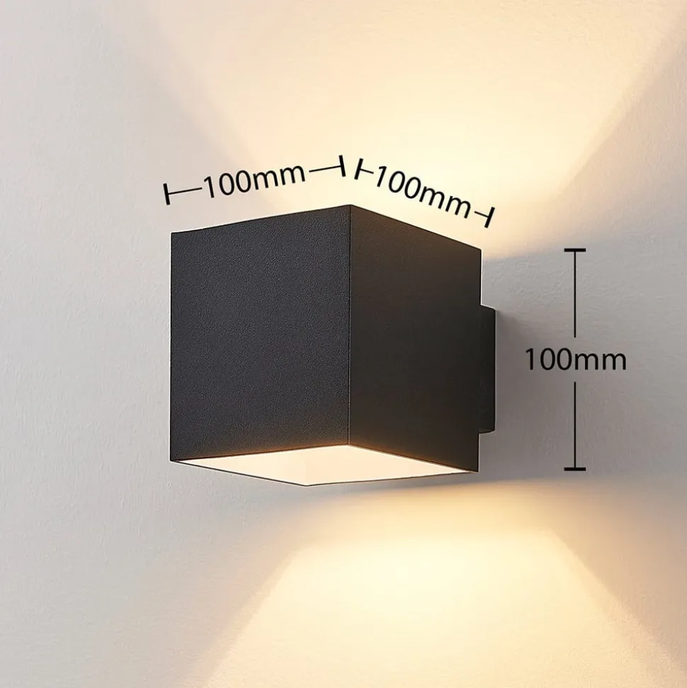 Svart Zuzana vegglampe med effektivt lysutslipp oppover og nedover Zuzana har en kompakt kubeform og er en lyskilde laget av aluminium med svart overflate. Innsiden av lampen er utstyrt med en G9-lampe, hvor lyset kan slippe ut oppover og nedover, noe som skaper en effektiv glød på veggen. Designet har et moderne, men tidløst uttrykk og kan enkelt integreres i mange miljøer, der lampen gir et koselig lys.