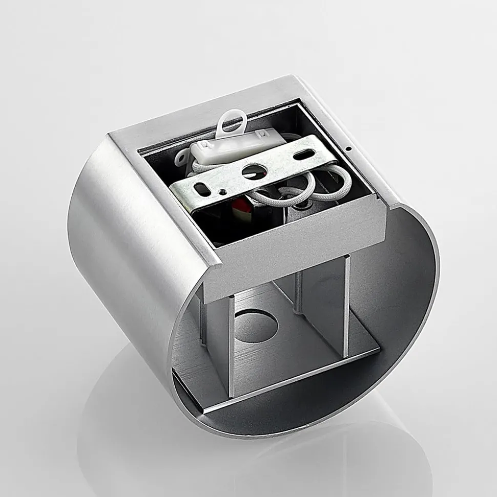 Sylindrisk Zuzana vegglampe med aluminiumsoverflate og justerbart lysutslipp Zuzana er ideell for bruk i oppholdsrom, da vegglampen skaper et stemningsfullt lys med en koselig effekt. Lyset fra G9-lampen sendes både oppover og nedover, og lysutslippet er justerbart. Forbrukerne har mulighet til å velge om de vil ha samme lysutstrålingsvinkel øverst og nederst, eller om de vil gjøre den bred øverst og smal nederst, eller omvendt. Dette gjør at det varme lyset slipper ut spesielt effektivt, og effekten kan ses tydelig på veggen.