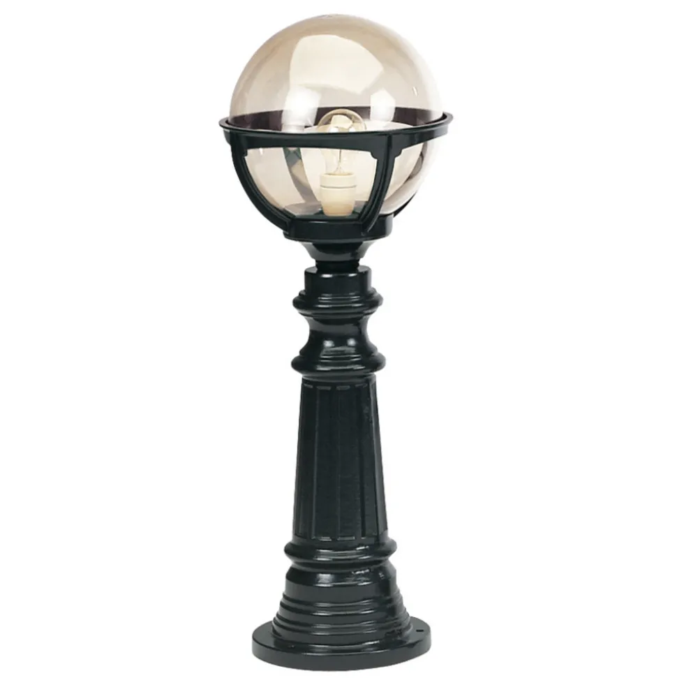 Bali gangbanelampe med vakker lyseffekt Denne vakkert utformede lampen har helt klart klassiske trekk: Den transparente glasskulen harmonerer perfekt med det mørke metallhuset. Det dekorativt formede metallet understreker armaturens smakfulle effekt. Glasskroppen gir en passende og behagelig lyseffekt. Selv når den er slått av, vil denne lampen pryde ethvert uteområde. Installasjonsanvisning: Lampen kobles direkte til stikkontakten. Vi anbefaler at installasjonen utføres av en kvalifisert elektriker. Produsenten anbefaler å bruke gummikabler til dette formålet