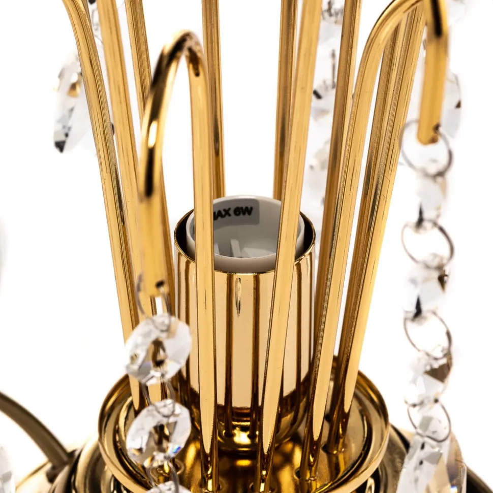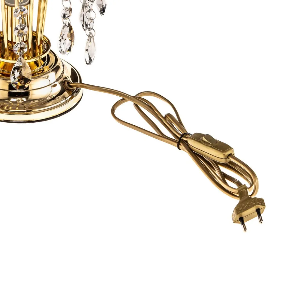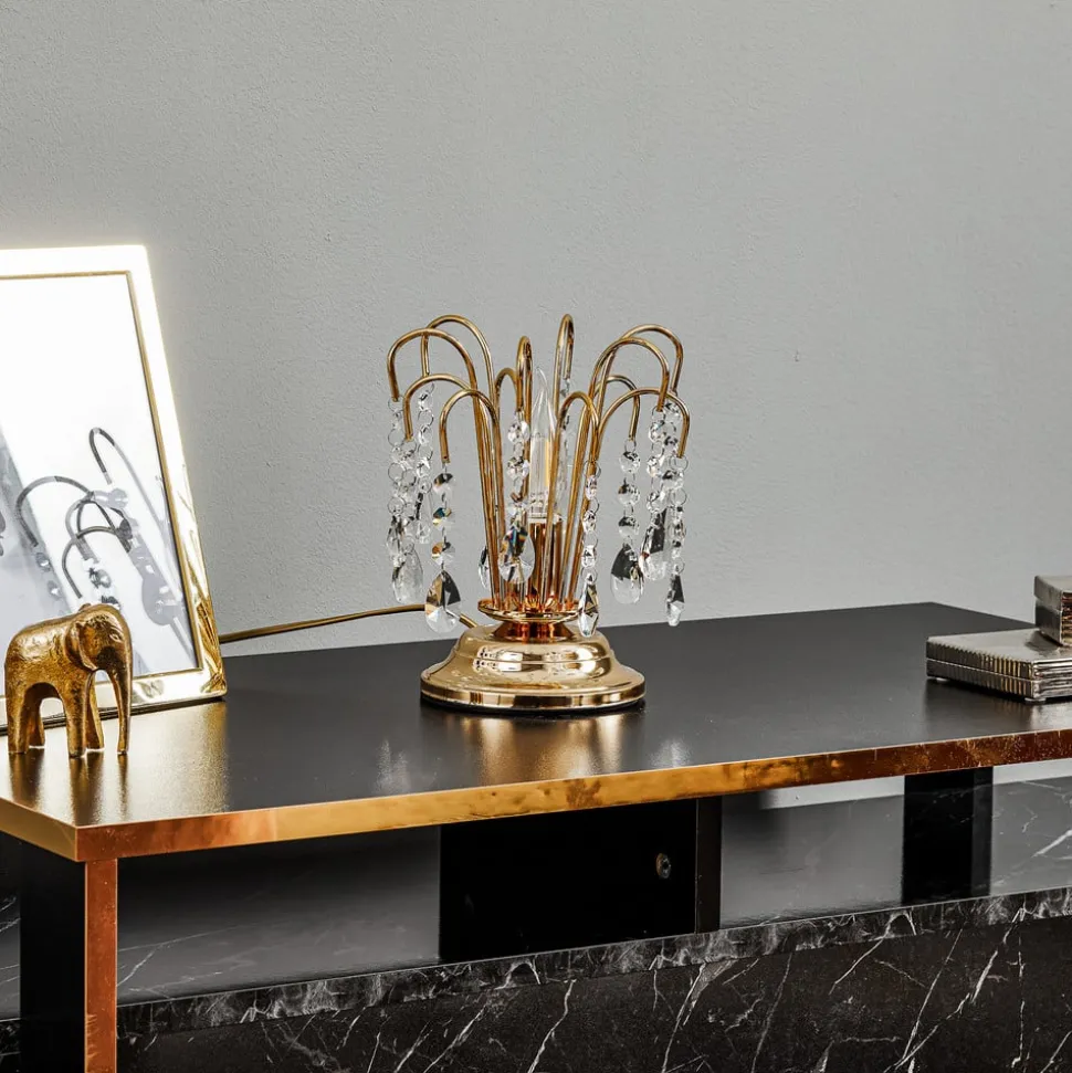 Bordlampen Pioggia kombinerer moderne design med luksuriøse materialer og skaper dermed en imponerende atmosfære. Den er laget av høykvalitets metall og edelt K9-krystallglass og gir hvert rom et spesielt preg. Den gyldne fargen harmonerer perfekt med de klare krystalldelene, som bryter lyset på en fascinerende måte og skaper et unikt spill mellom lys og skygge.