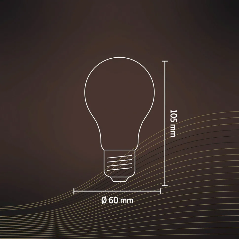LED-filamentpære E27 A60 med valgbar fargetemperatur via app Denne LED-lampen med E27-sokkel, klart glass og filamentpærer er både vakker og intelligent. Ved hjelp av Calex-appen, som kan lastes ned gratis til Android- og iOS-enheter, kan denne lampen slås av og på, dimmes og lysfargen kan justeres trinnløst fra svært varme 1800 K til varmhvitt 3000 K. Tilkoblingen skjer via WLAN. Spesielle funksjoner/kompatibilitet: – valgbart hvitt lys varmhvit 1 800 K til varmhvit 3 000 K – kan styres via Calex-appen (gratis for Android og iOS) – stemmestyring mulig med Amazon Alexa, Google Assistant og Siri Shortcuts – dimbar via app eller stemmekommando – WiFi 2,4 GHz