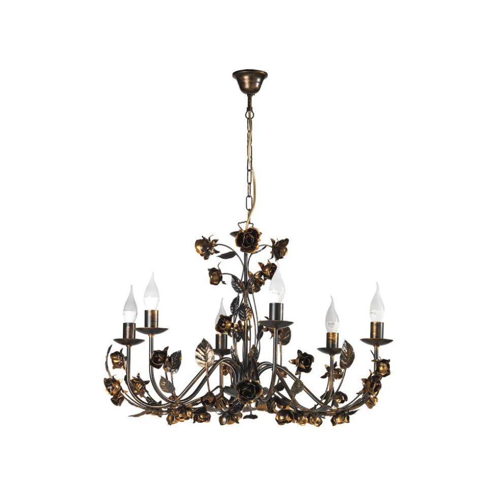 Carolina lysekrone, bronsefarget, 6 lyskilder, jern