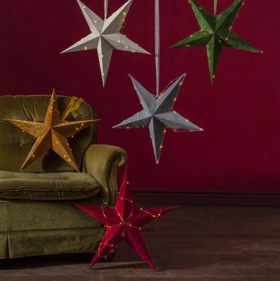 Dekostjerne Velvet med Dew Drop LED-lyslenke rød