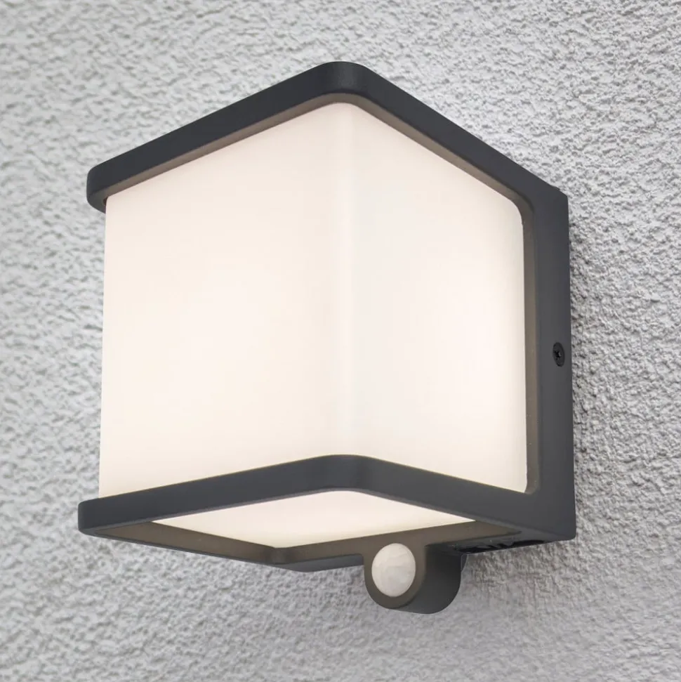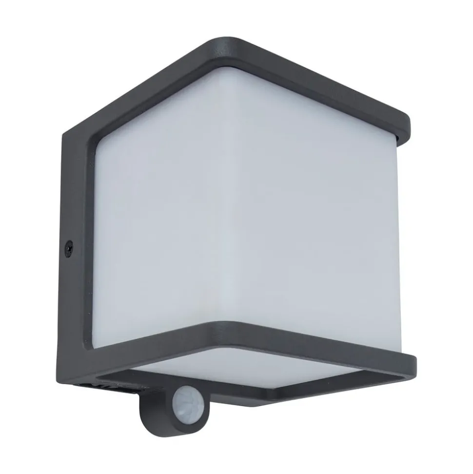 Til tross for sin kompakte og ganske usmykkede design, viser Doblo LED utendørs vegglampe seg å være spesielt praktisk. Et solcellepanel over lampen genererer strøm fra sollys, som lagres i et batteri. En bryter brukes til å velge mellom fire moduser, og aktiverer dermed den integrerte bevegelses- og skumringsbryteren. DIM-modus muliggjør også permanent belysning som er nedtonet og deretter lyser opp når du beveger deg.