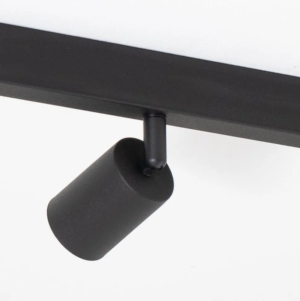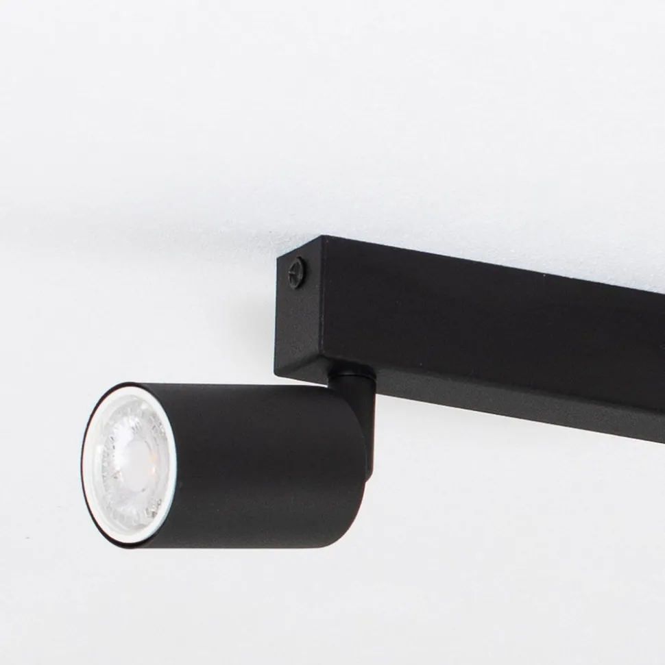 GU10-downlight Top i stål med svart finish består av en lang baldakin og fire sylindriske spotterhoder plassert på rad. Spotterhodene er justerbare, slik at lyset kan rettes mot ønsket område.