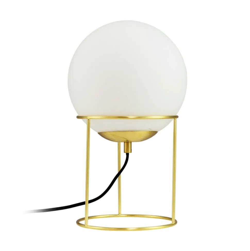 Dyberg Larsen bordlampe Madrid, opal/messingfarget, 34 cm