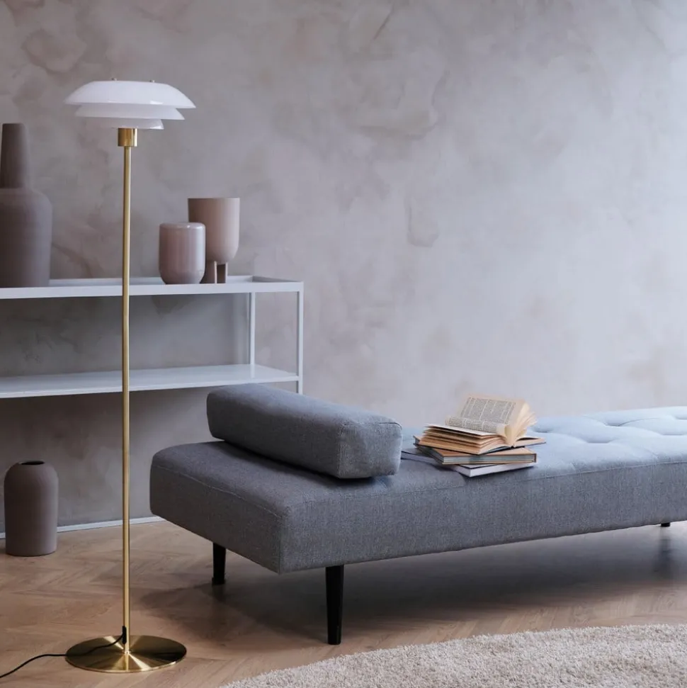Belysningskonsept i skandinavisk design: DL31 gulvlampe DL31 gulvlampe kombinerer eleganse med funksjonell estetikk i sitt messingfargede utseende. Inspirert av skandinavisk designtradisjon føyer den seg sømløst inn i stue og spisestue og skaper en atmosfære som inviterer til både avslapping og kreativ utfoldelse. DL31 gulvlampe er mer enn bare en lyskilde; den er et statement-piece som forvandler ethvert rom til et kunstverk. Med sin tilstedeværelse blir gulvlampen midtpunktet i rommet og gjenspeiler filosofien om at god design skal være både vakker og praktisk. Lampen er utstyrt med en av/på-bryter på kabelen.