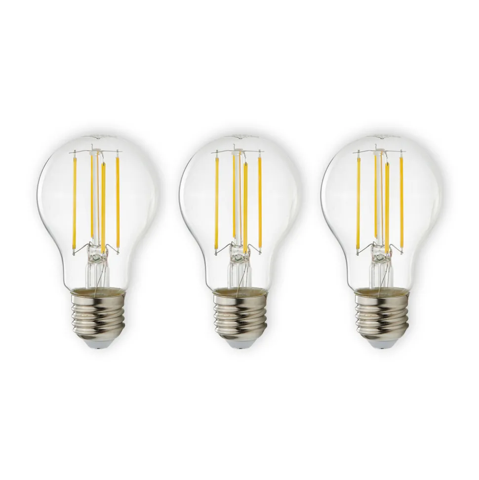 Pæreformet E27 LED-lampe, 7W, klar, 2700 K, glødetråd – i et praktisk sett med 3 stk.