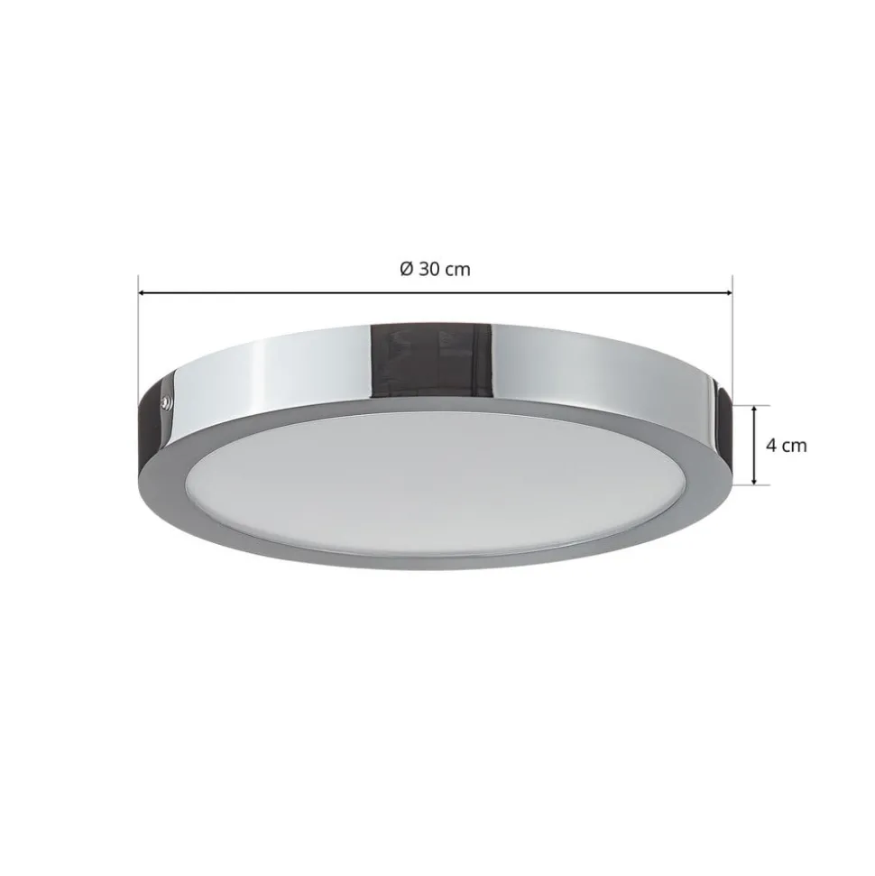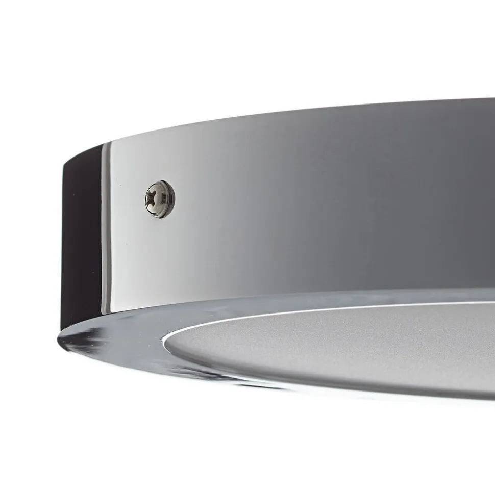 Rundt LED-taklampe Fueva-C i en kromfarget jakke, kontrollerbar via app
