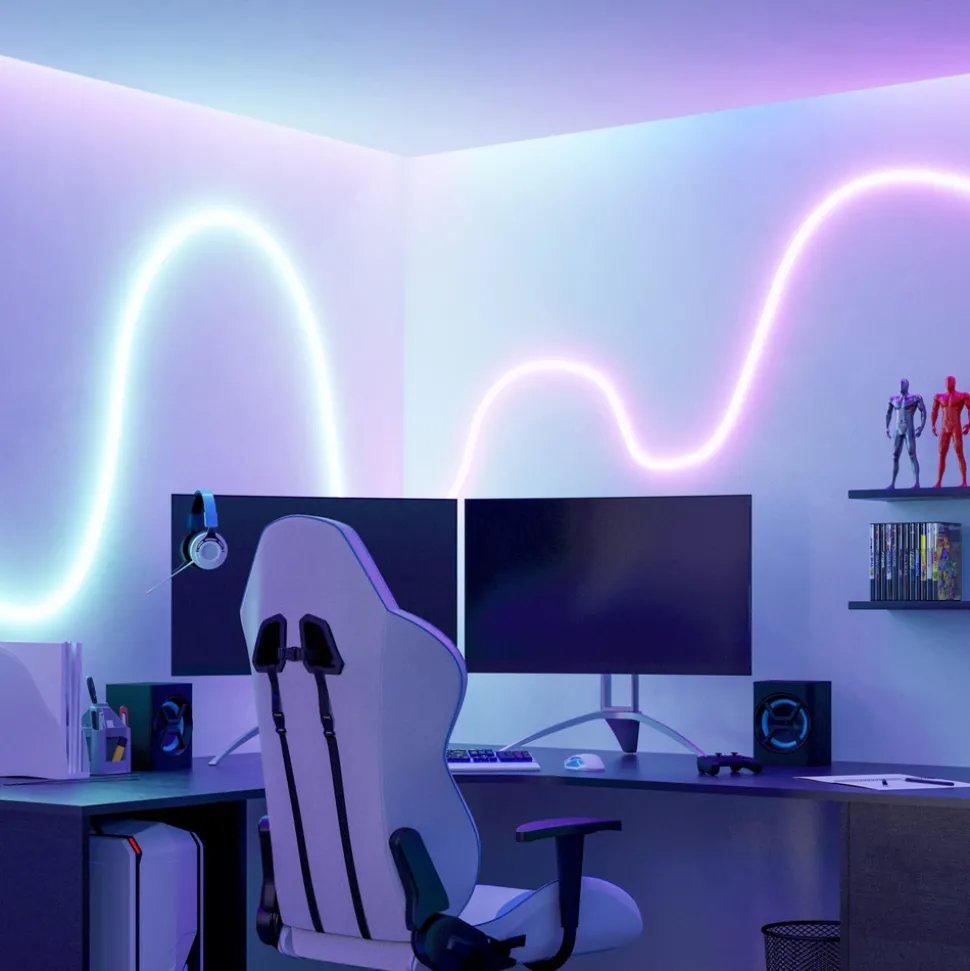 LED-stripe Neon Stripe-Z, 3 meter lang, hvit, RGB, CCT LED-stripen Neon Stripe-Z fra Connect.Z-serien med en lengde på 3 meter tilbyr allsidige belysningsløsninger for en rekke ulike interiører. Den selvklebende baksiden gjør det enkelt å feste den i tak, på vegger, møbler eller trapper. Med RGB- og CCT-teknologi kan lysfargen og lysstyrken justeres etter behov for alltid å skape den perfekte atmosfæren. Stripe kan styres smart via den gratis AwoX Home Control-appen som er tilgjengelig for Android og iOS, eller alternativt via en fjernkontroll som fås som tilbehør. Styring via appen gir også tilgang til mange andre praktiske funksjoner, f.eks. timer, tilstedeværelsessimulering og mye mer. I likhet med alle andre produkter i Connect.Z-serien er Stripe kompatibel med Connect.Z-tilbehøret og kan også integreres i kompatible stemmeassistenter takket være styring via Bluetooth og ZigBee 3.0. LED-stripen er ideell for kreativ belysning av hyller, møbler, vegger eller andre områder, og kan tilpasses fleksibelt for å implementere individuelle belysningskonsepter.