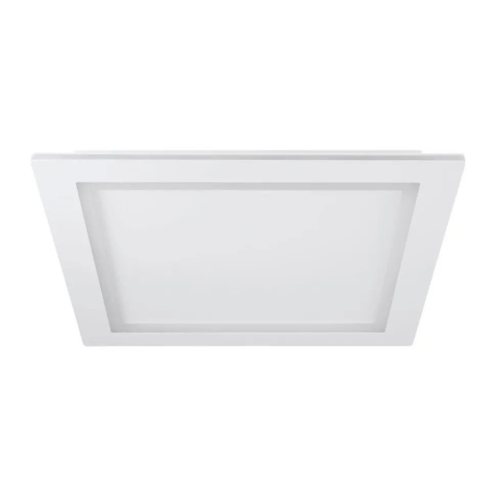 LED-taklampe Padrogiano-Z EGLO Connect, 60 x 60 cm, firkantet Den store LED-taklampen Padrogiano-Z fra connect.Z smart home-serien fra EGLO er laget av hvitt metall og en plastramme på toppen. De integrerte LED-lampene gir behagelig lys etter ønske, for takket være RGB og fargevekslende CCT kan man velge både hvitt lys i området fra varmhvit til dagslys hvit (indre ring) og farget lys fra en rekke sterke farger (ytre ring). Både den ytre og den indre akrylringen kan slås av og på og dimmes separat. Taklampen styres via en gratis app (AwoX Home Control) og gir tilgang til flere praktiske funksjoner som dimmer, timer, tilstedeværelsessimulering og mye mer. LED-panelet styres via Bluetooth og ZigBee 3.0 og kan også styres via kompatible stemmeassistenter. Alternativt kan den smarte taklampen også styres ved hjelp av en separat tilgjengelig fjernkontroll. Den firkantede lampen passer inn i mange interiørstiler og tilbyr variabel, stemningsfull belysning for alle rom og situasjoner.