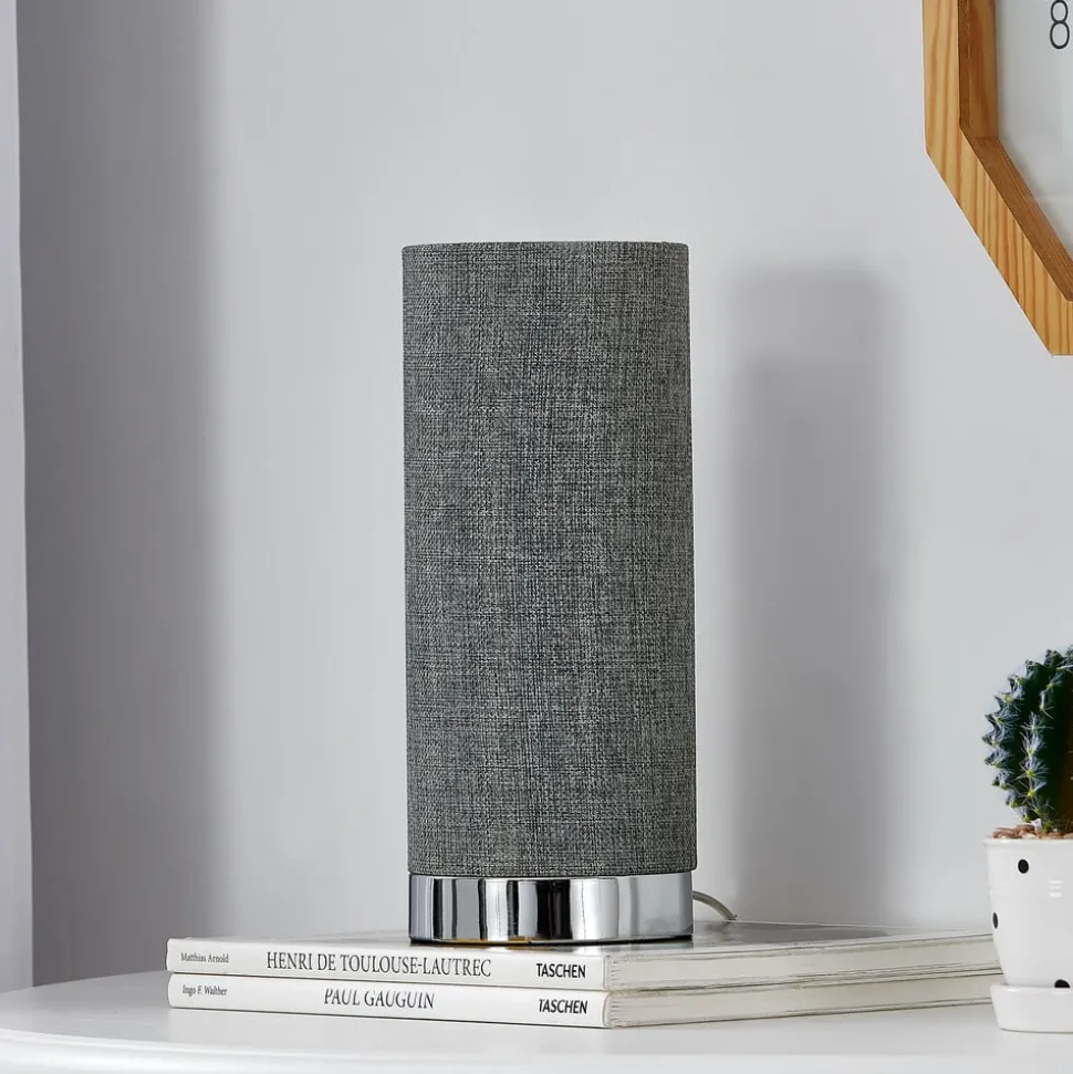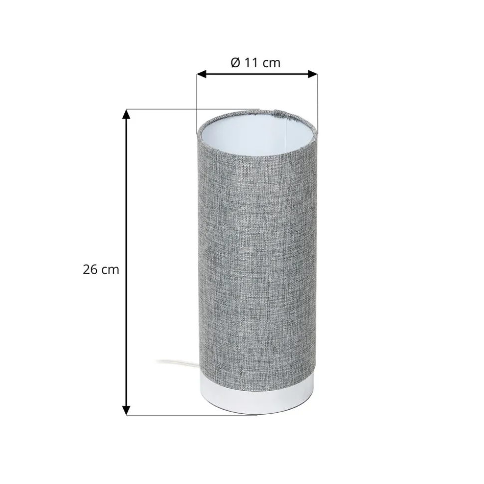 Dimbar bordlampe Ronja med mørkgrå tekstilskjerm i rund form