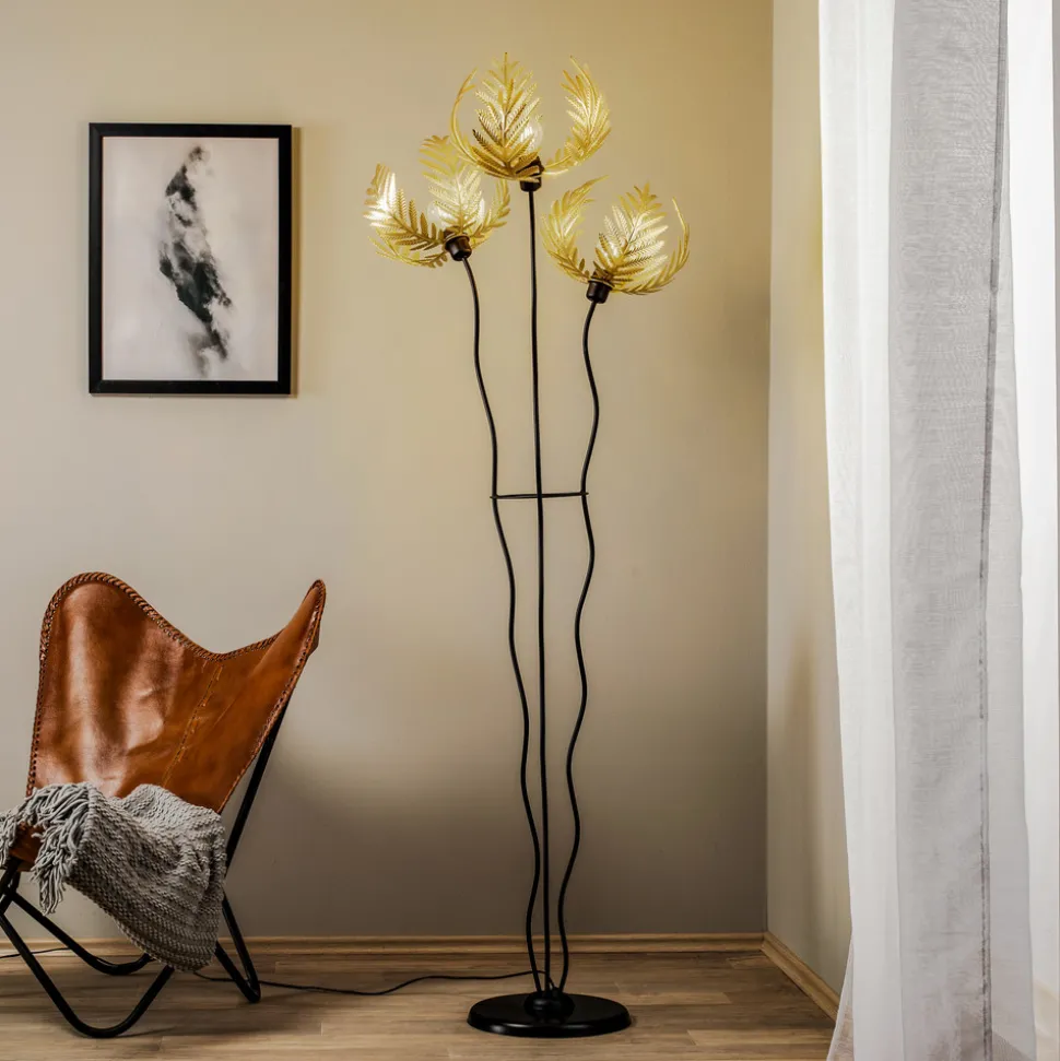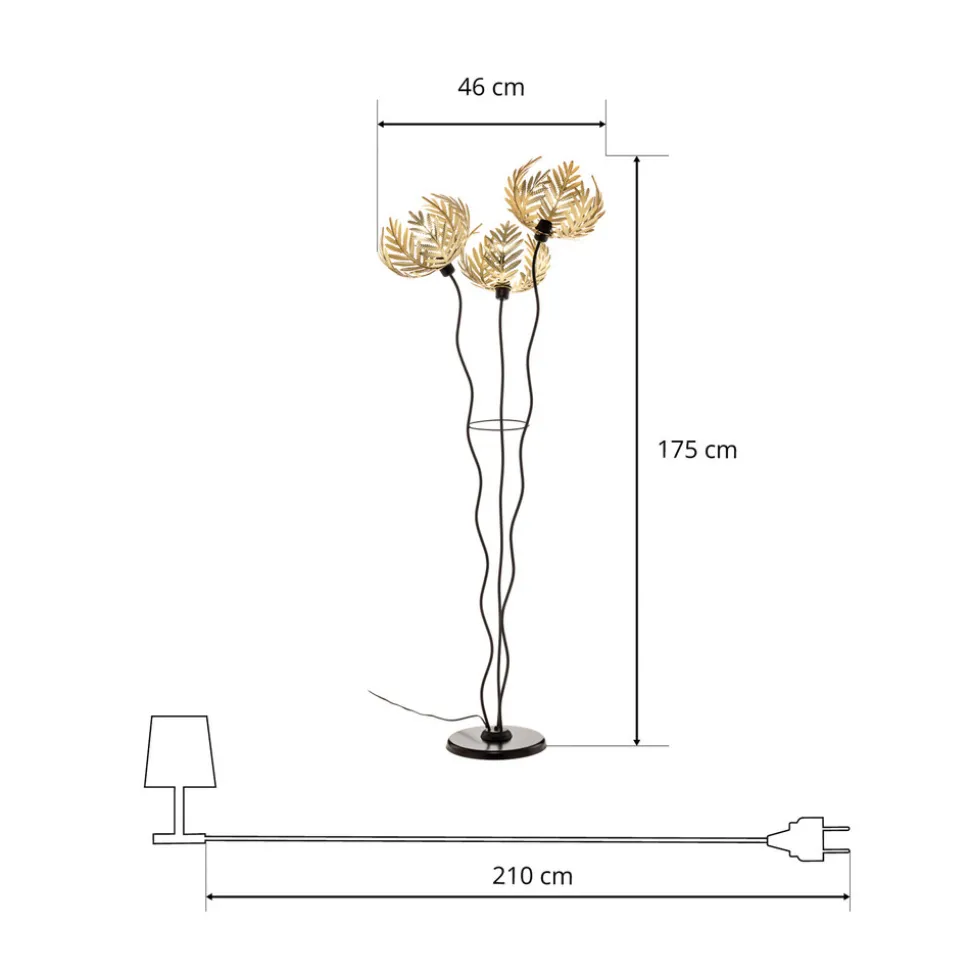 Gulvlampen Dubai kombinerer kunstnerisk florentinsk design med en elegant gylden og svart farge. Denne lampen er laget av høykvalitets metall og gir et snev av luksus til enhver stue, soverom eller spisestue. Palmedekorasjonen gir lampen en unik estetikk som virker både klassisk og moderne.