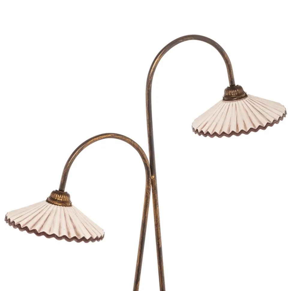 Gulvlampen Rosina med to keramiske lampeskjermer kombinerer rustikk sjarm med tidløs eleganse. Lampen er laget av høykvalitetsmaterialer som keramikk og jern, og passer harmonisk inn i stuen og spisestuen. Kombinasjonen av lysrosa og antikkbronse gir ethvert rom en varm og innbydende atmosfære. De nøye utformede keramiske lampeskjermene sørger for jevn lysfordeling og setter stilfulle aksenter.