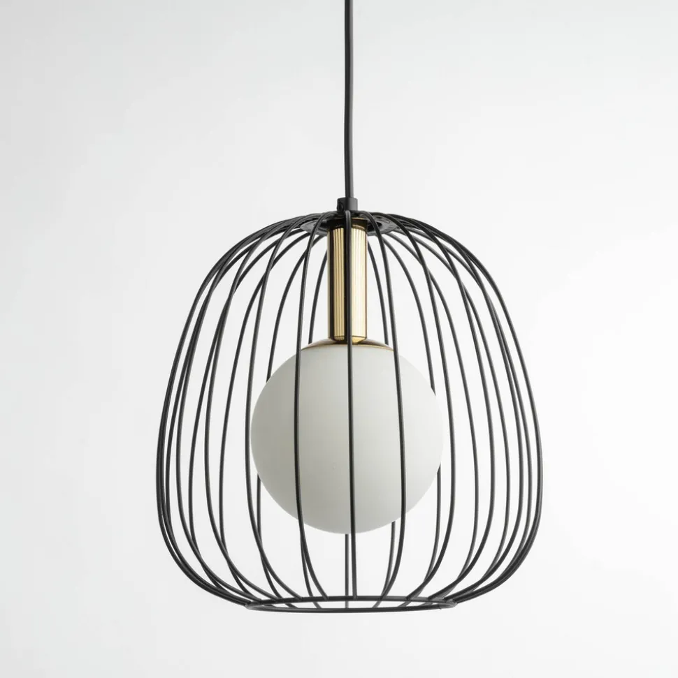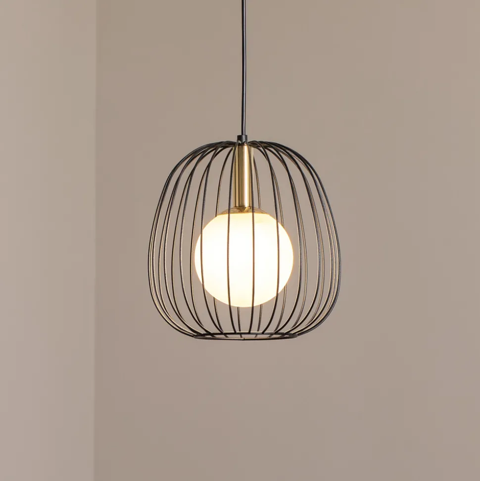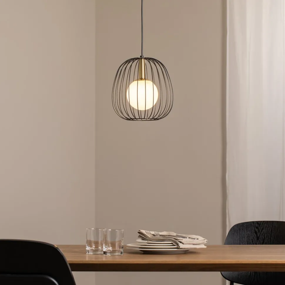 Hengelampen Bell S kombinerer moderne design med høykvalitetsmaterialer som stål og glass. Denne stilfulle lampen, produsert i Europa, setter et spesielt preg i enhver stue eller spisestue. Kombinasjonen av fargene svart, gull og hvitt gir lampen en tidløs eleganse som passer sømløst inn i forskjellige interiørstiler.