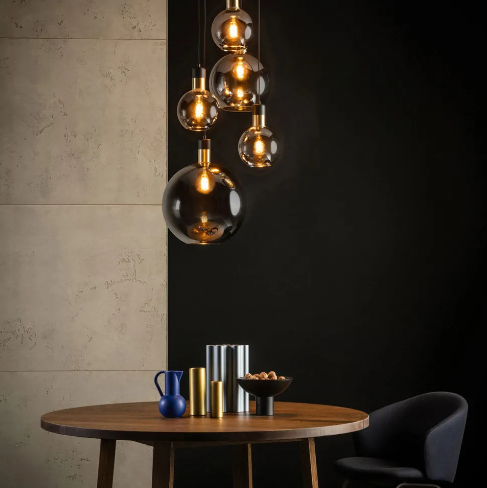 Hengelampe Julius, 5 lyskilder, røykgrå