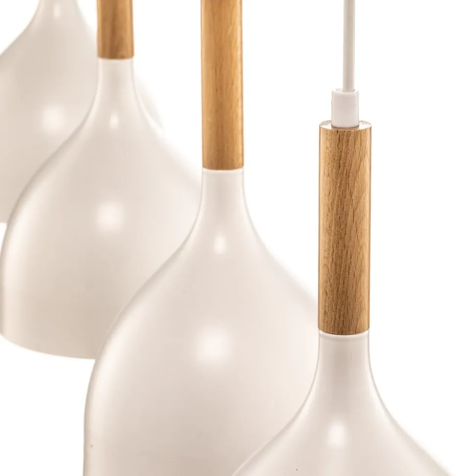 Hengelampen Noak kombinerer tidløst design med varmen fra naturlige materialer. Denne lampen er laget av høykvalitets metall og tre og passer perfekt inn i ulike hjemmemiljøer, enten det er i stuen eller spisestuen. Kombinasjonen av hvit finish og lyst tre gir ethvert rom en innbydende og samtidig moderne atmosfære.