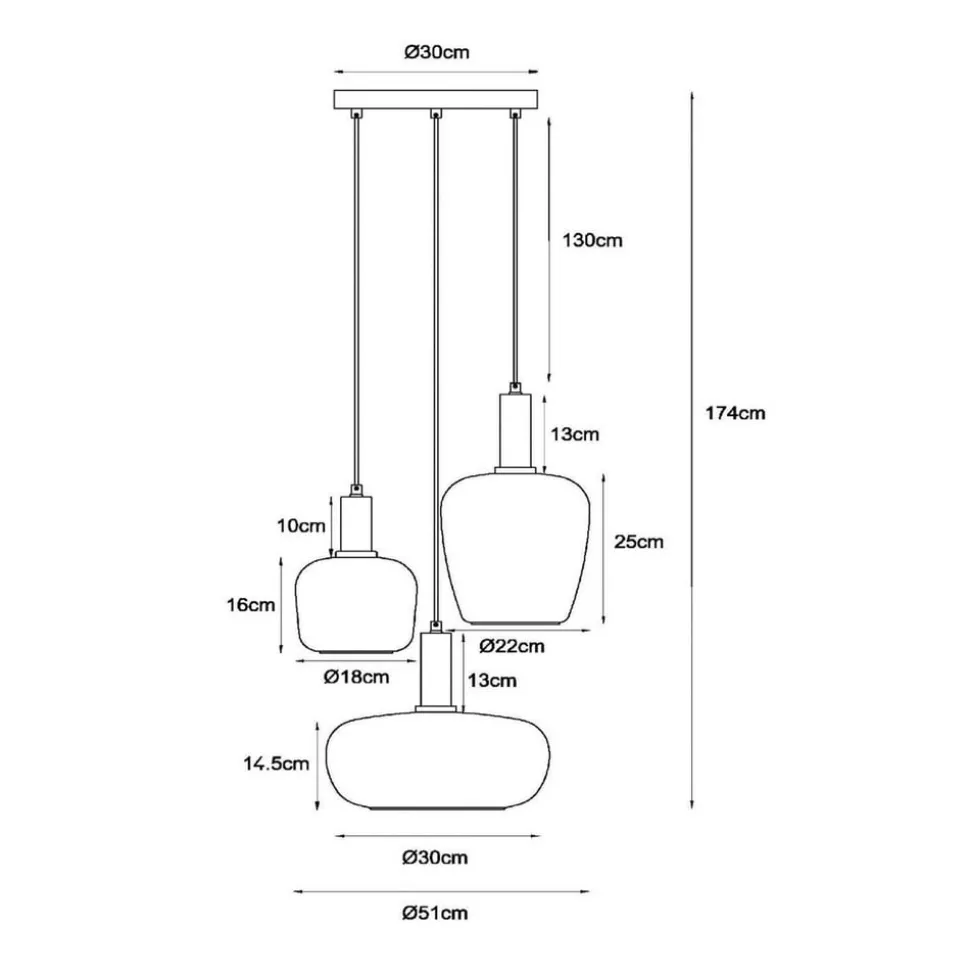 Ilona pendellampe, glass, multifarget, Ø 30 cm, 3 lyskilder