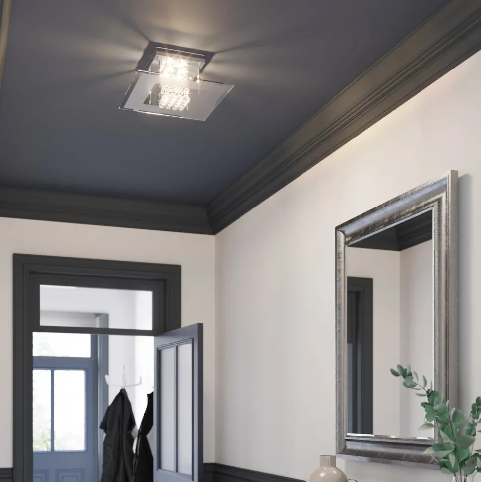 LED-taklampe Lisandra med funklende krystallelementer, kan også brukes på badet