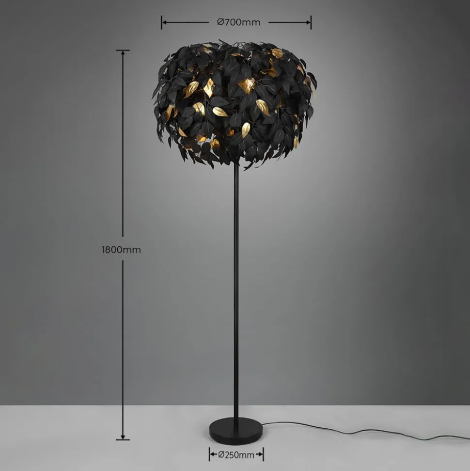Leavy gulvlampe, svart/gull, høyde 180 cm, plast
