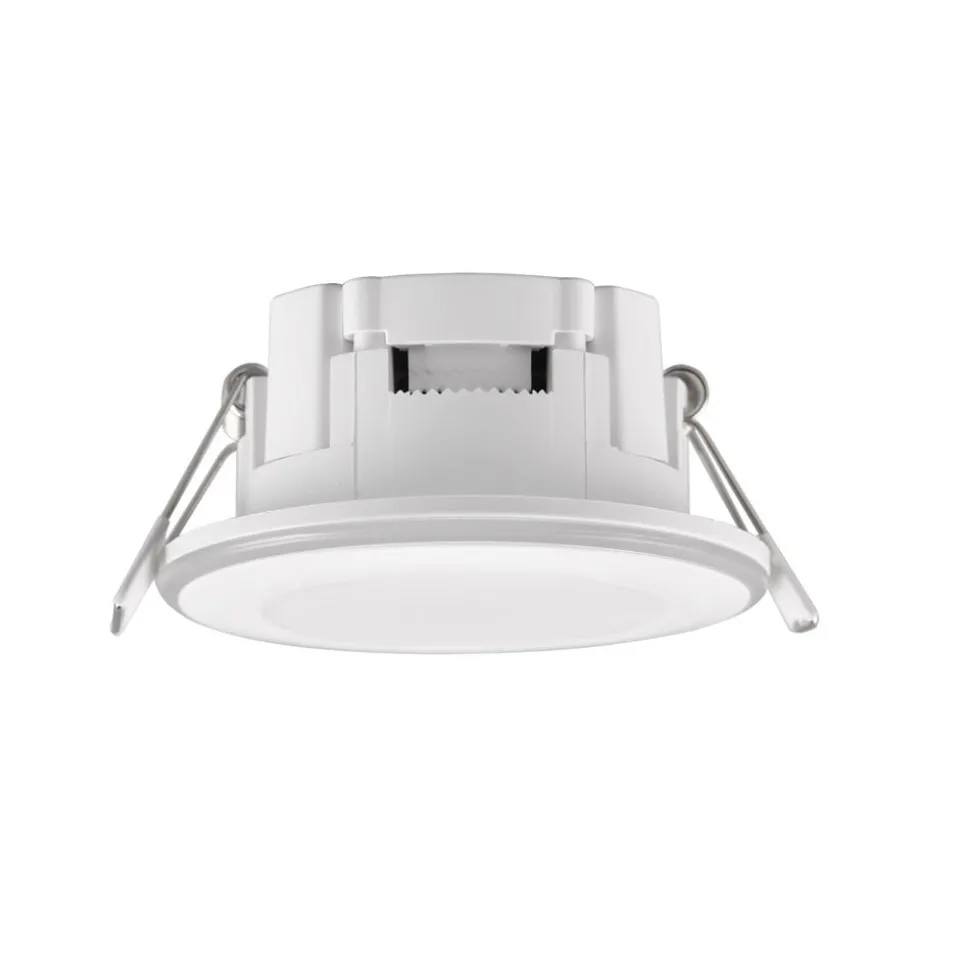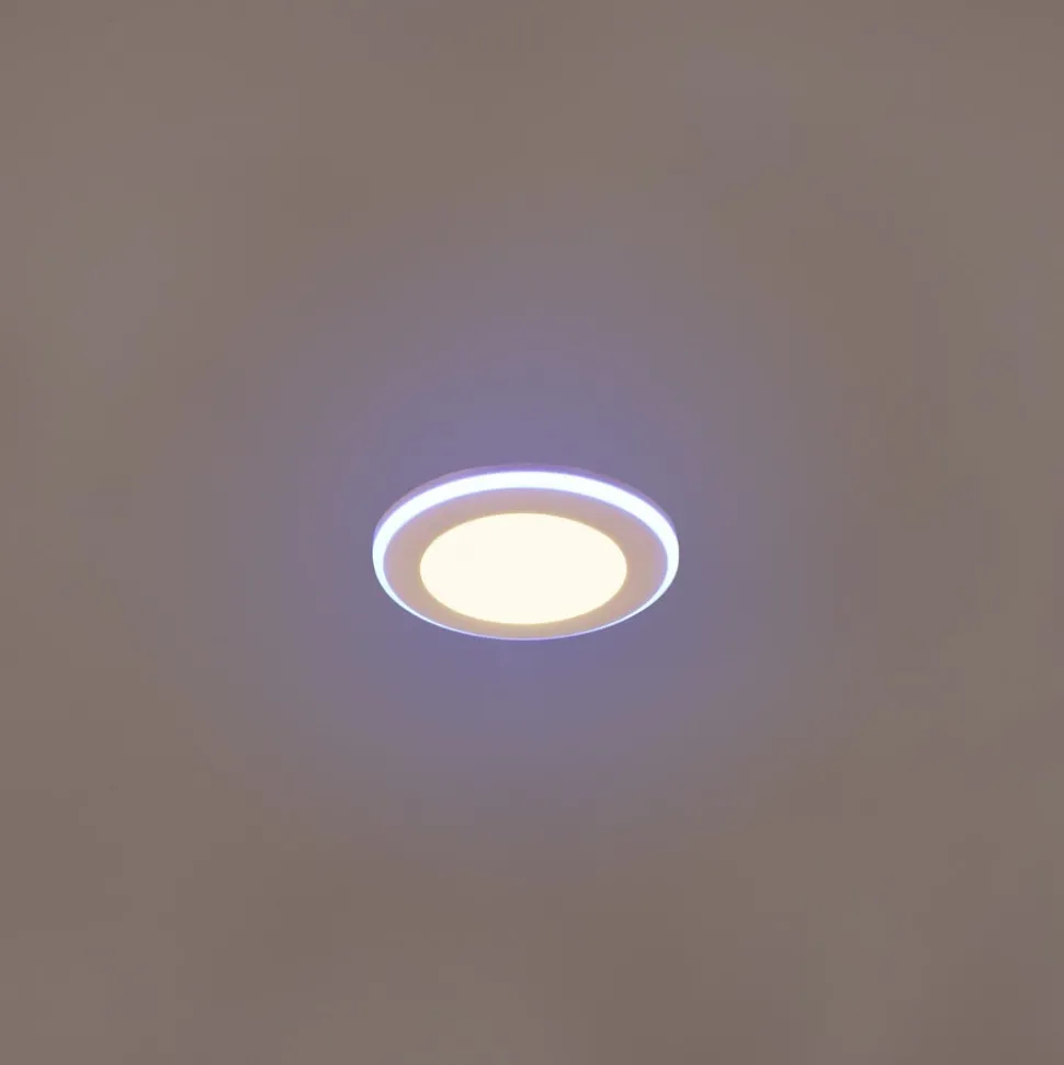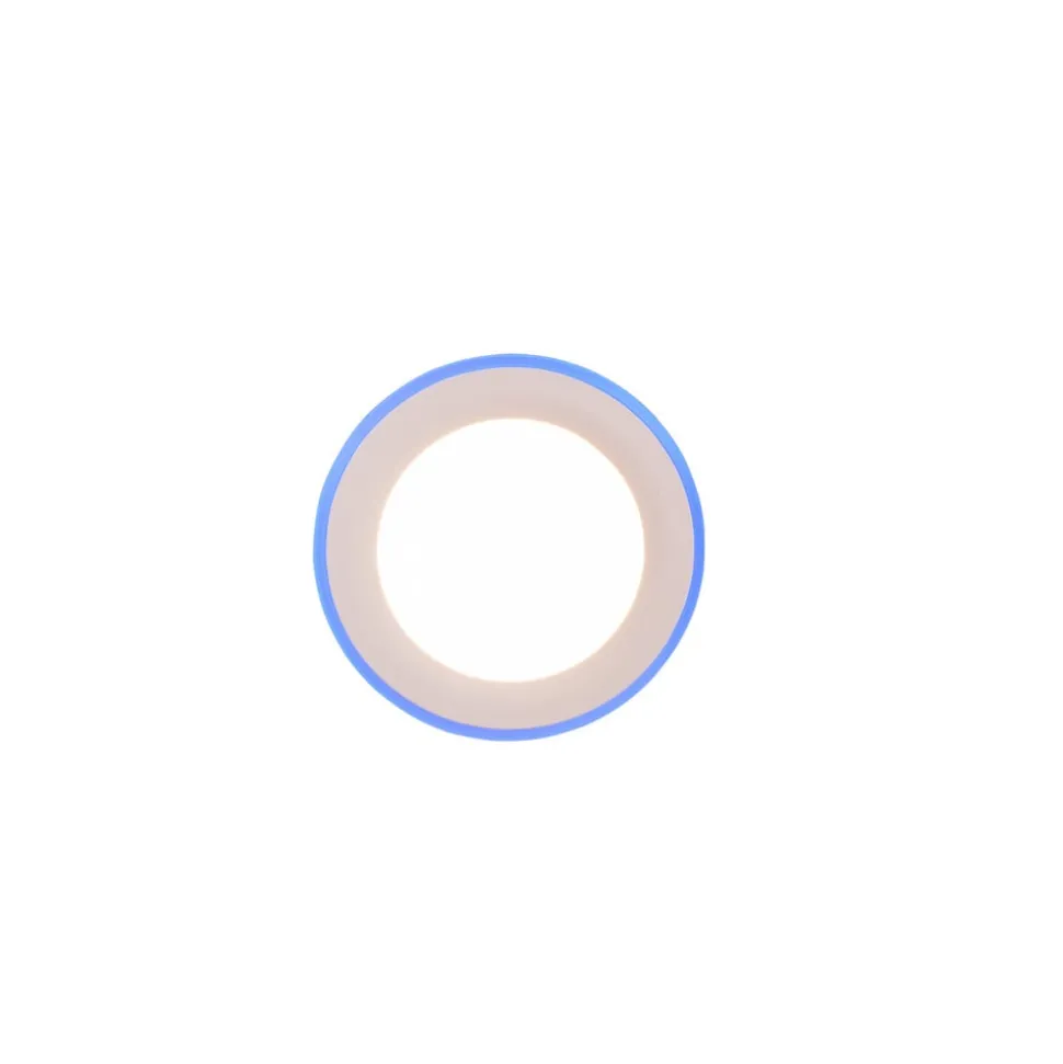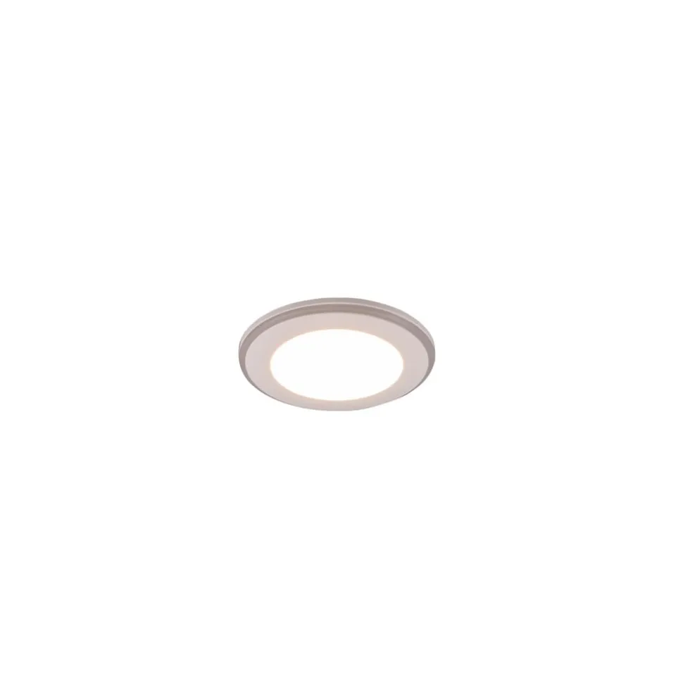 Rund Argus LED innfelt downlight, lysfarge og lysstyrke kan styres med fjernkontroll Argus LED innfelt takarmatur i plast har en varmhvit hovedlyskilde og en sideveis integrert ring med ekstra lysdioder som kan slås på separat og lyse i ulike fargenyanser. Bytte, valg av lysfarge og dimming gjøres med den medfølgende fjernkontrollen (inkl. 1 x CR2025-batteri). Denne har også fire forhåndskonfigurerte lysscener.
