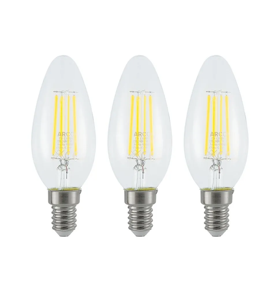 LED stearinlyslampe E14 4W glødetråd, 2700K, kan dimmes i sett med 3 stk.
