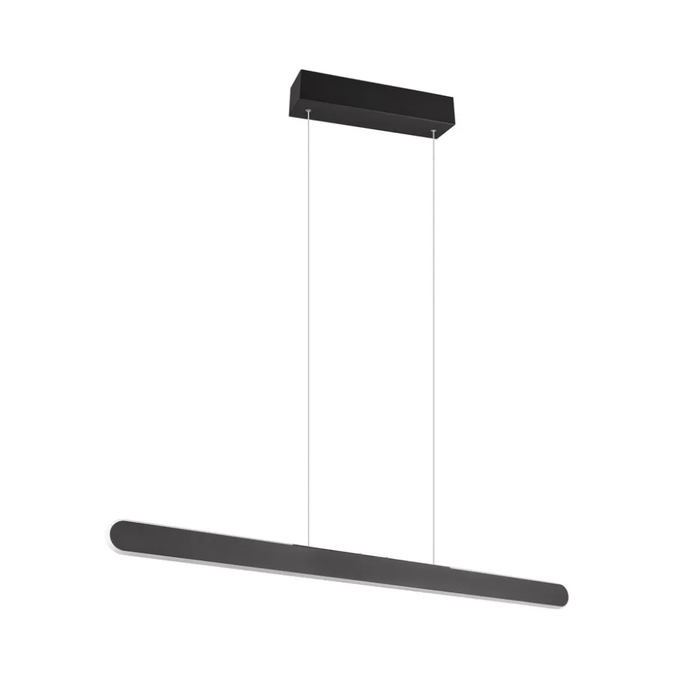 Helios LED-pendellampe med dobbeltsidig lysfordeling, høydejusterbar, dimbar, CCT Helios LED-pendellampe er en absolutt moderne lyskilde for oppholds- og spisestuer, både visuelt og funksjonelt. Metallhuset er utstyrt med gjennomgående LED-striper som skaper et behagelig lys både oppover og nedover. De integrerte LED-lampene er plassert bak satengbelagte deksler som sprer lyset uten å blende. Pendellampens høyde kan enkelt justeres, og den kan betjenes ved hjelp av en berøringsbryter på toppen av skjermen. Både lysfarge og lysstyrke kan justeres ved hjelp av denne.