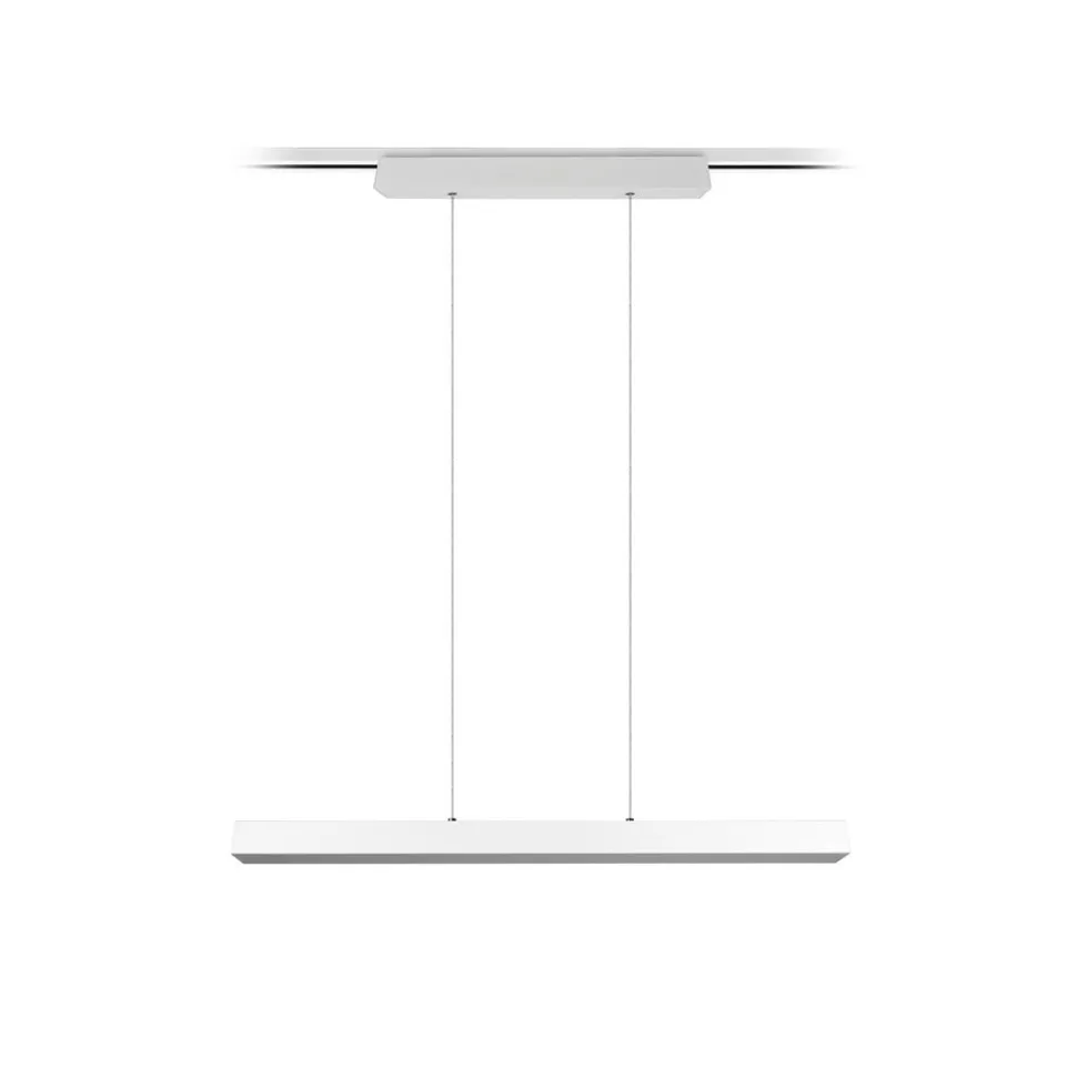 Dimbar Paros DUOline LED-pendelarmatur for 2-faset skinnesystem Paros LED-pendelarmatur er vinkelformet som en bjelke. Den er beregnet for DUOline 2-faset skinnesystem, der den enkelt kan monteres i en skinne. Lyset sendes ut over hele den nedadvendte avslutningsflaten på skjermen og via to oppadvendte paneler som er innfelt øverst til venstre og høyre på skjermen. Den kan også dimmes via veggbryteren.
