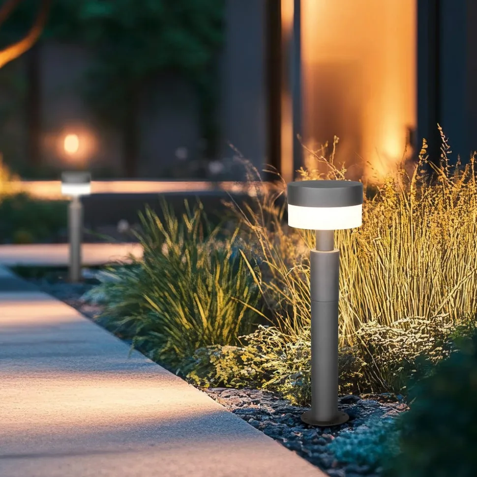 LED-sokkellampen Mackenzie imponerer med sitt moderne design og bruken av høykvalitets trykkstøpt aluminium i en stilig antrasittfarge. Med kapslingsgrad IP54 er den optimal for bruk utendørs og gir pålitelig beskyttelse mot sprutvann og støv. Den fastmonterte LED-lyskilden sørger for jevn belysning og en behagelig varmhvit lysfarge. Sokkelampens energieffektive LED-teknologi bidrar til redusert energiforbruk uten at det går på bekostning av lyskvaliteten. Denne kombinasjonen av funksjonalitet og estetikk gjør lampen til et ideelt valg for moderne uteområder.