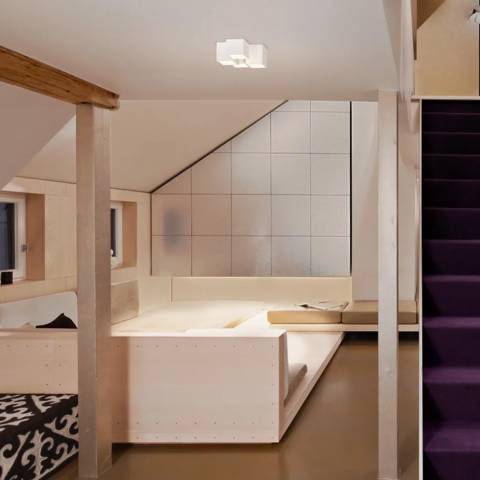 Kroppen til Decor Swan LED-taklampen er laget av gips og kan overmales eller stå hvit, avhengig av dine preferanser. Fire cuboider i forskjellige høyder er oppstilt her og danner en kantete struktur som skiller seg ut i hvert tak. LED-taklampen Decor Swan har ikke bare mye å by på optisk, men også når det gjelder lysteknologi, fordi den tilbyr dimmebart lys med justerbar fargetemperatur, som kan styres via en app på nettbrettet/smarttelefonen eller med talekommando etter WLAN-integrasjon.