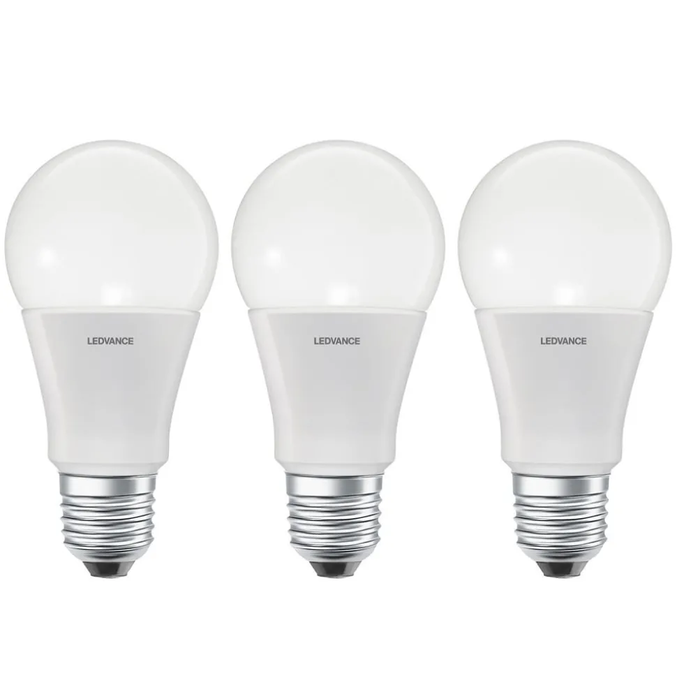 Sett med 3 varmhvite LEDVANCE SMART+ E27 LED-lamper med 14 W i stor lyspæreform – kan styres via WLAN