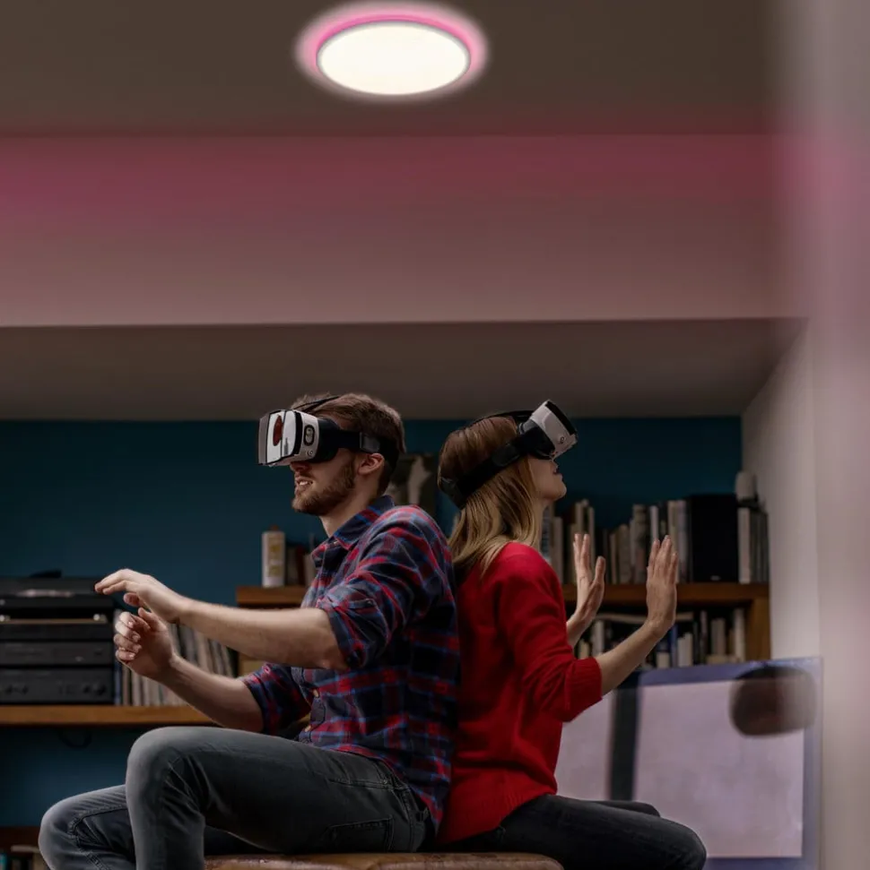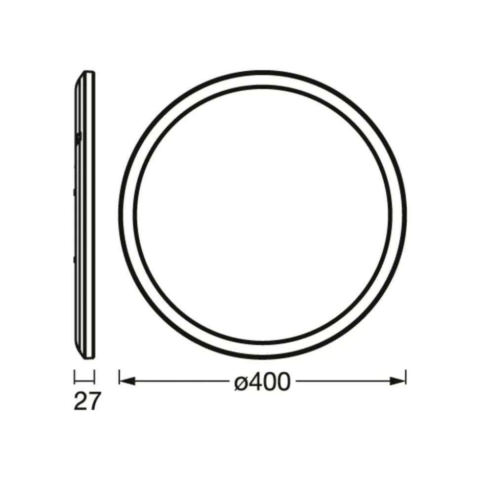 Orbis Ultra Slim Backlight LED-taklampen laget av plast består av en smal, rund ramme og en flat, opal diffusor. I tillegg til lysdiodene som lyser nedover, er ytterligere dioder integrert på baksiden. Begge lyskildene kan styres separat. Effektiv rombelysning kan for eksempel oppnås i en varmhvit til dagslyshvit lysfarge med fargerik takbelysning. Lysstyrken, lysfargen og fargetemperaturen kan justeres via app på nettbrettet/smarttelefonen eller ved stemmekommando. Taklampen er integrert med LEDVANCE SMART+ WiFi-teknologien via WLAN.