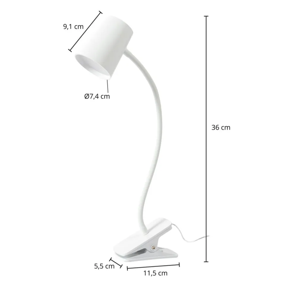 Lindby Ailina LED-bordlampe, klemmefot, hvit