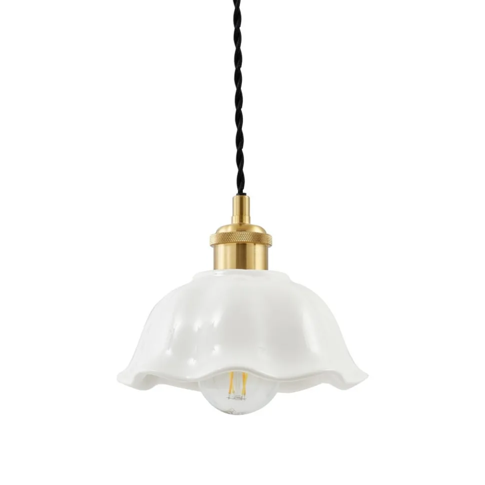 Lindby Annegret hengelampe, Ø 18 cm, keramikk, hvit/messing
