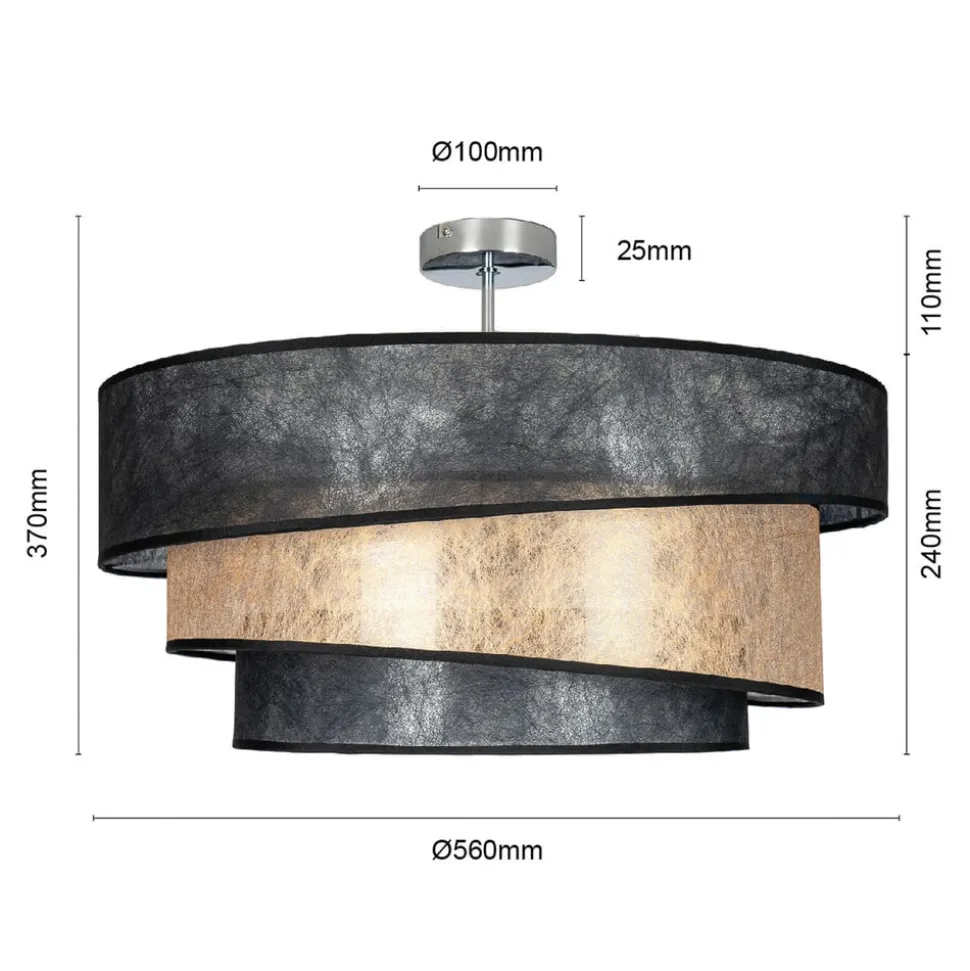 Svart og gull taklampe Ayvira med flerlags lampeskjerm