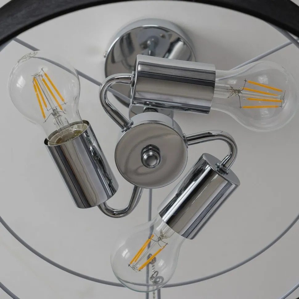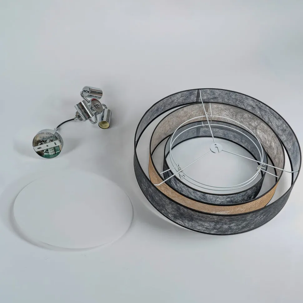 Taklampen Ayvira ser veldig moderne og elegant ut i taket. Den er preget av sin uvanlige lampeskjerm, som består av totalt tre lag. Skjermelementene er utformet asymmetrisk og er vekselvis sorte og gullfargede. Dette gir lampen en stilig fargekombinasjon som gjør lampen til et ekte blikkfang i taket i et moderne miljø, selv når lyset er slukket. Det ser flott ut i både stuen og soverommet.