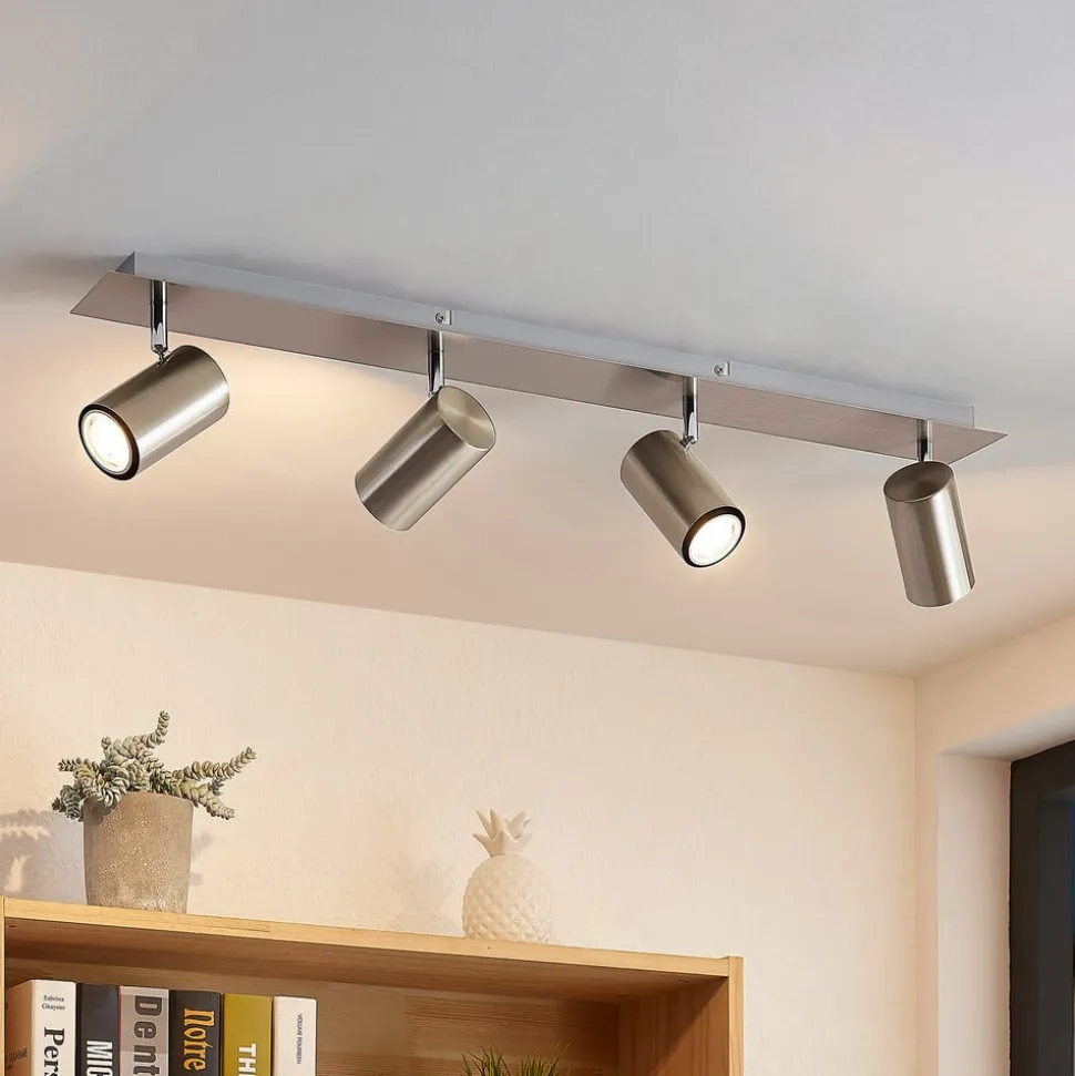 Lindby downlight Joffrey, 80 cm, nikkel, 4 lyskilder, GU10