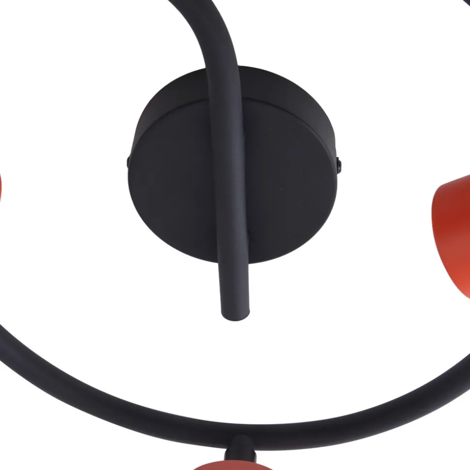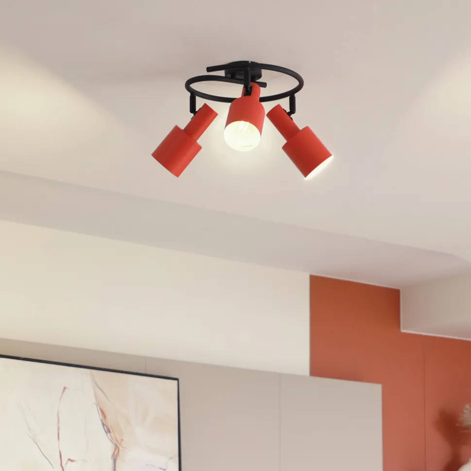 Ovelia downlight med 3 lyskilder i rund form Ovelia downlight er ideell til å lyse opp ditt eget hjem. Den er allsidig og kan brukes i for eksempel gangen, soverommet, stuen eller arbeidsrommet. Taklampen består av en rund, svart ramme som tre skjermer er festet til. Disse kan justeres slik at lyset rettes dit det trengs. Ovelia imponerer med sitt spesielle design og sin iøynefallende fargekombinasjon, noe som gjør den til et blikkfang i oppholdsrommet selv når den er slukket.