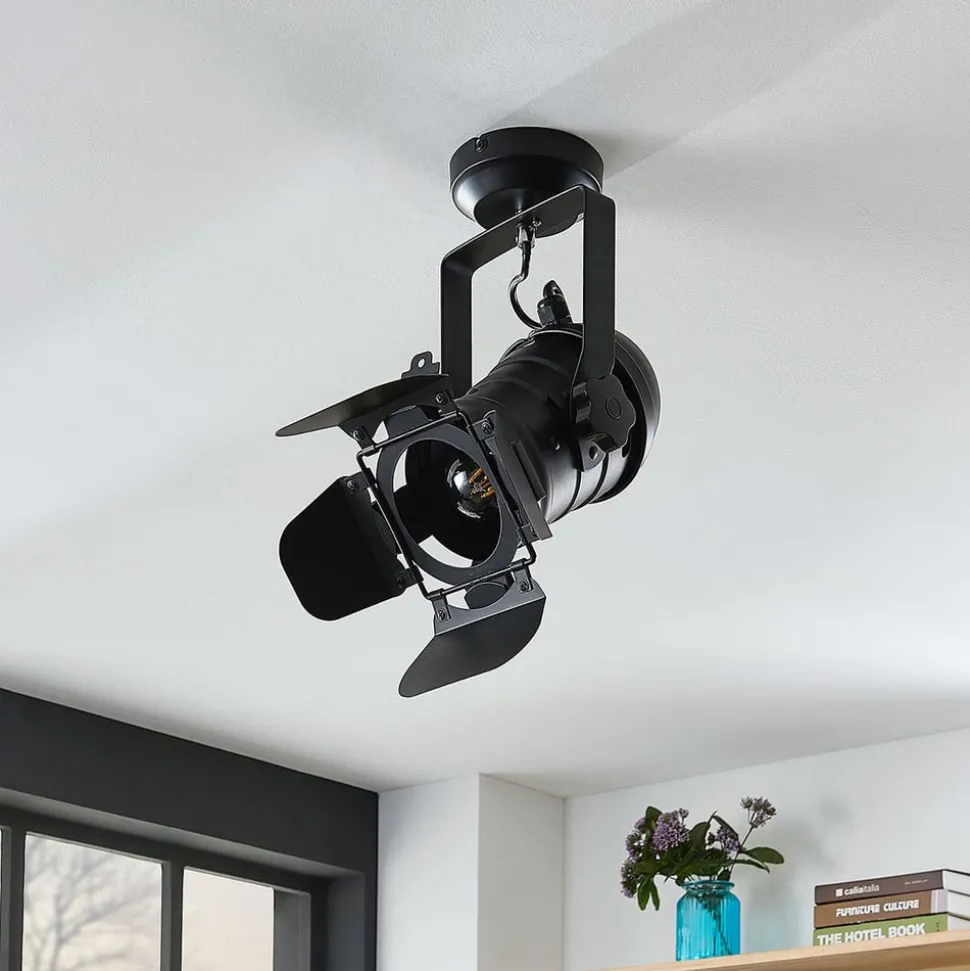 Svart Tilen downlight i stil med gamle scenespotlights Mottoet her er: light off, spot on! Den moderne Tilen downlighten kan justeres med noen få enkle grep og kan dermed, i likhet med en scenespotlight, rettes direkte mot det stedet der lyset trengs. Spotlighten kan roteres og svinges, noe som gjør den perfekt for målrettet belysning. Armaturens fire ytre klaffer perfeksjonerer spotlight-looken og kan også settes smalere eller lenger fra hverandre for dekorative formål.