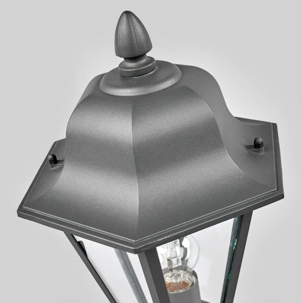 Edana sokkellampe med lanterneformet lampeskjerm Edana er en sokkellampe i klassisk stil med nostalgiske, antikke trekk. Stativet og lampeskjermen er svært detaljerte, for eksempel er taket supplert med en slags blonder. Metalloverflaten er lakkert i antrasitt, og glassrutene som er brukt, er klare slik at mest mulig lys kan trenge uhindret utover. Som sokkellampe kan Edana brukes til mange forhøyninger eller – som navnet antyder – sokler og gir pålitelig orienteringslys når dagslyset allerede har forsvunnet.