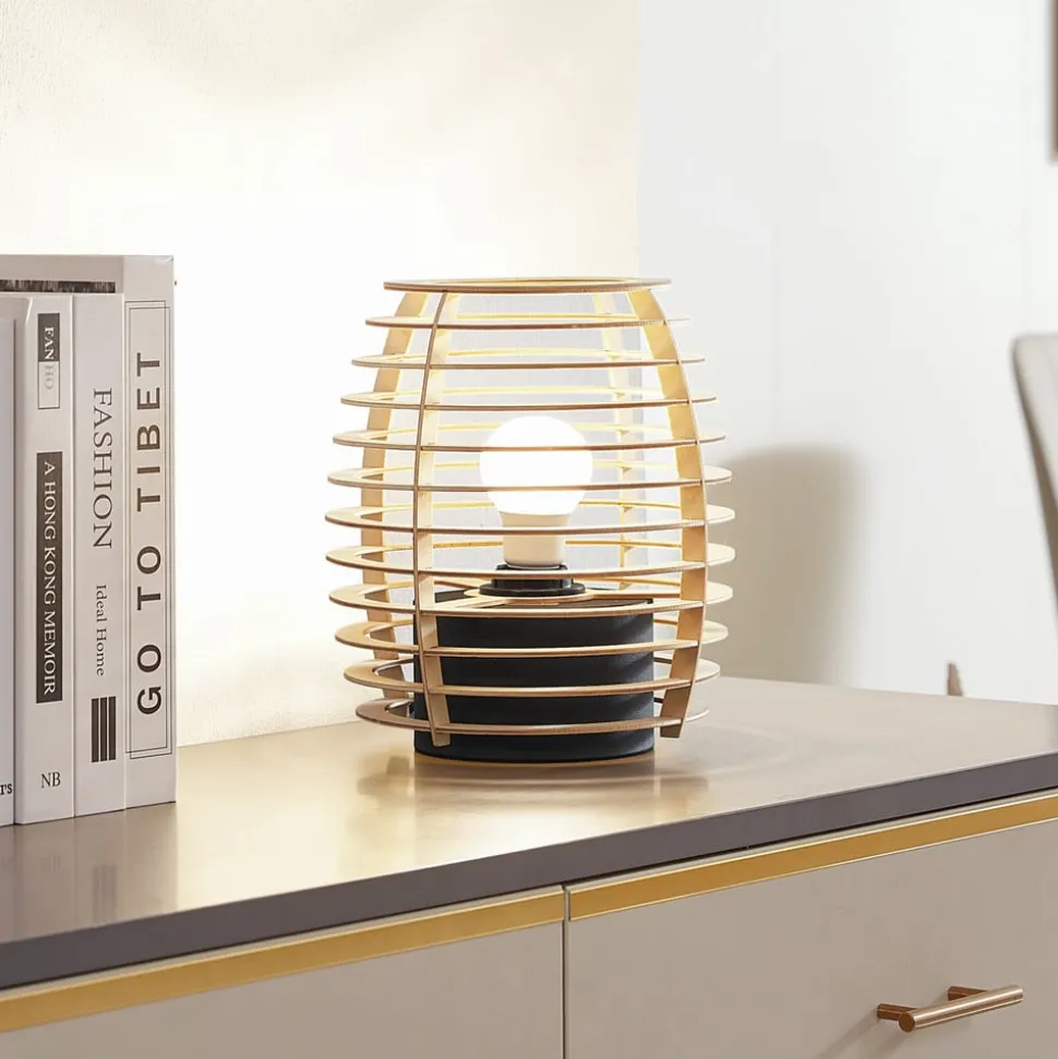 Lindby Ediz bordlampe, svart, tre, 25 cm høy, E27