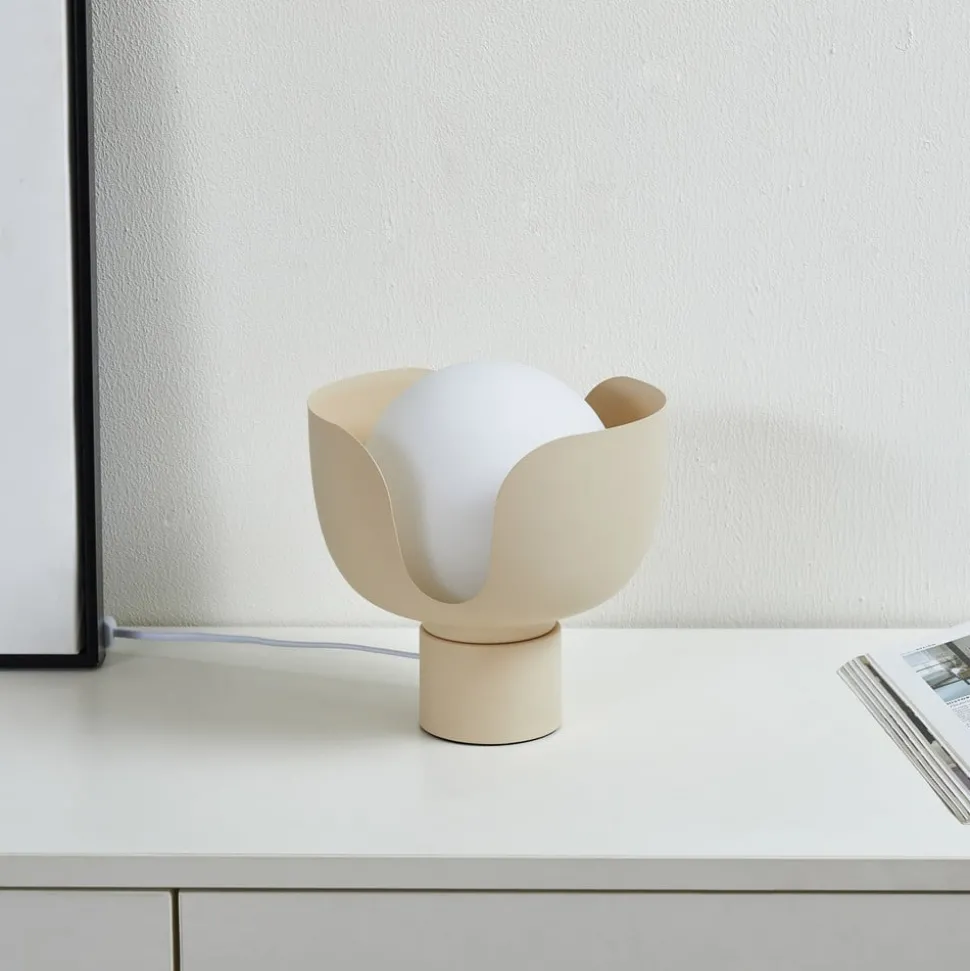 Fiora bordlampe i en slående fargekombinasjon av beige og hvitt – laget av jern og glass Oppdag Fiora bordlampe, et mesterverk av design som passer sømløst inn i moderne og skandinavisk interiør. Den nøye utvalgte beige fargen harmonerer med en rekke ulike romkonsepter og gir stilfulle aksenter til stuer, spisestuer og soverom. Lampen er laget av glass av høy kvalitet, og lover ikke bare en behagelig lysfordeling, men også lang levetid. ALS sentralt element på et sidebord eller som en diskret lyskilde på en kommode, er denne lampen det perfekte valget for deg som liker rene linjer og puristisk design.