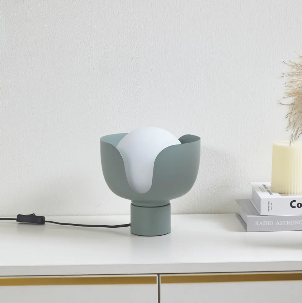 Fiora bordlampe av jern og glass i en slående fargekontrast av grønt og hvitt Bordlampen Fiora, som er utført i en tiltalende grønn nyanse og laget av glass av høy kvalitet, representerer en stilfull belysningsløsning som passer sømløst inn i moderne og skandinaviske møbleringskonsepter. Det myke lyset skaper en atmosfære i stuer, spisestuer og soverom som både innbyr til avslapping og fremmer konsentrasjon. Fiora bordlampe er ikke bare et belysningselement, men også et dekorativt element som understreker estetikken i ethvert rom.