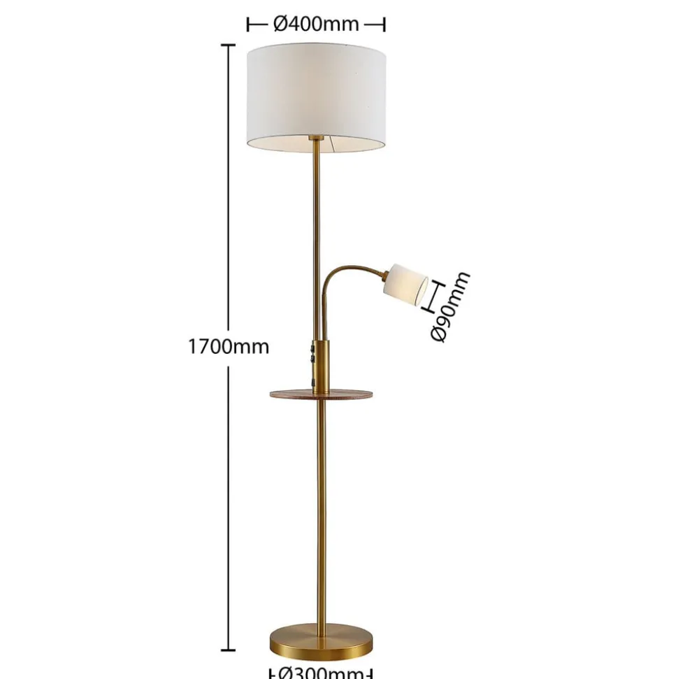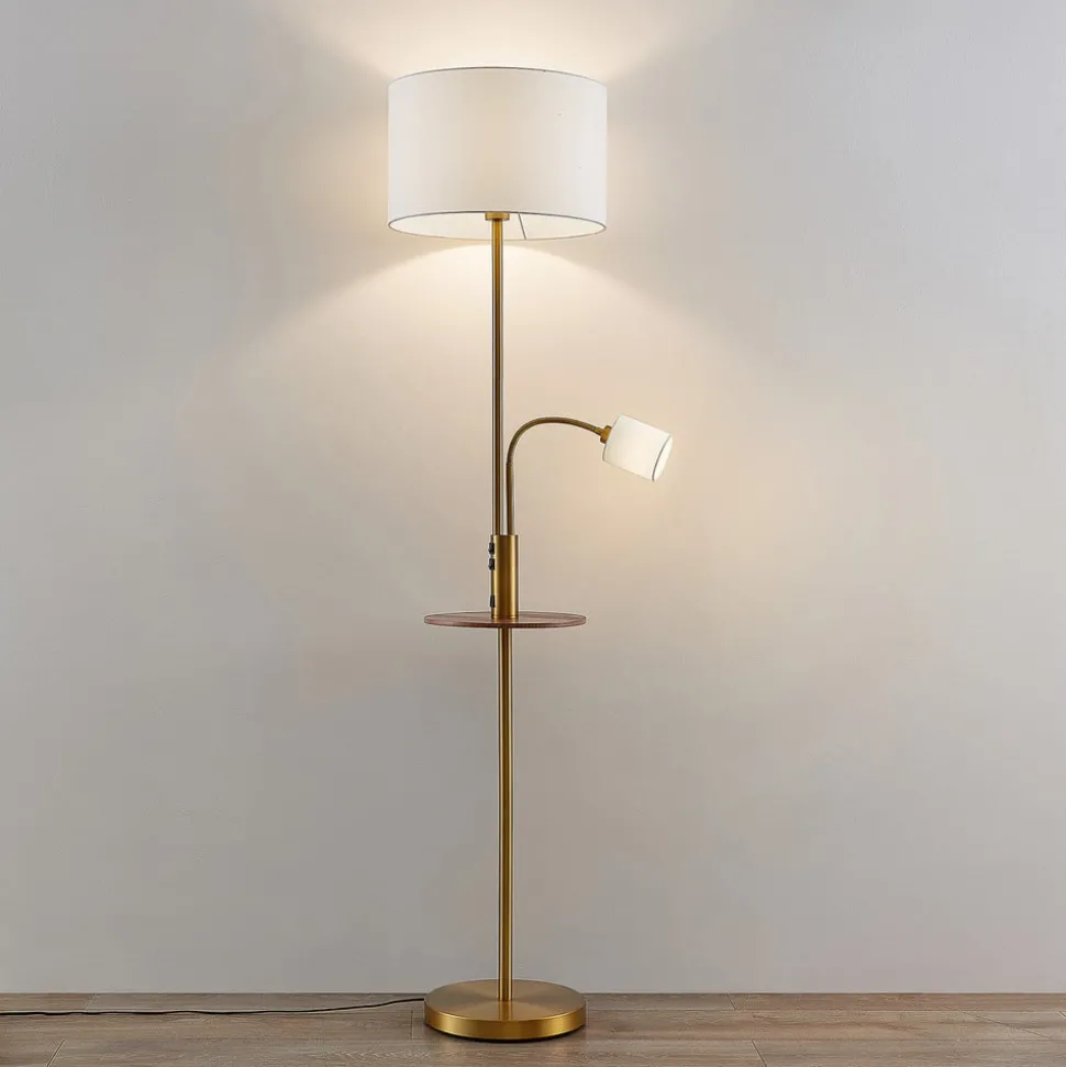 Gulvlampe Aovan i bronse med integrert USB-ladestasjon