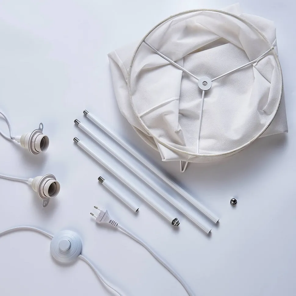 Tidløs Liana gulvlampe i stoff, hvit Gulvlamper i stoff som Liana er alltid et populært valg fordi de skaper et veldig koselig lys som er spesielt populært som tilleggsbelysning om kvelden. Du kan også velge å slukke hovedbelysningen, slik at du får et lys som er perfekt for å skape en koselig atmosfære om kvelden. Lianas lampekropp i stoff er konkav, noe som betyr at den smalner av mot midten. Tilførselskabelen er 180 cm lang og utstyrt med en bryter som kan betjenes med foten.