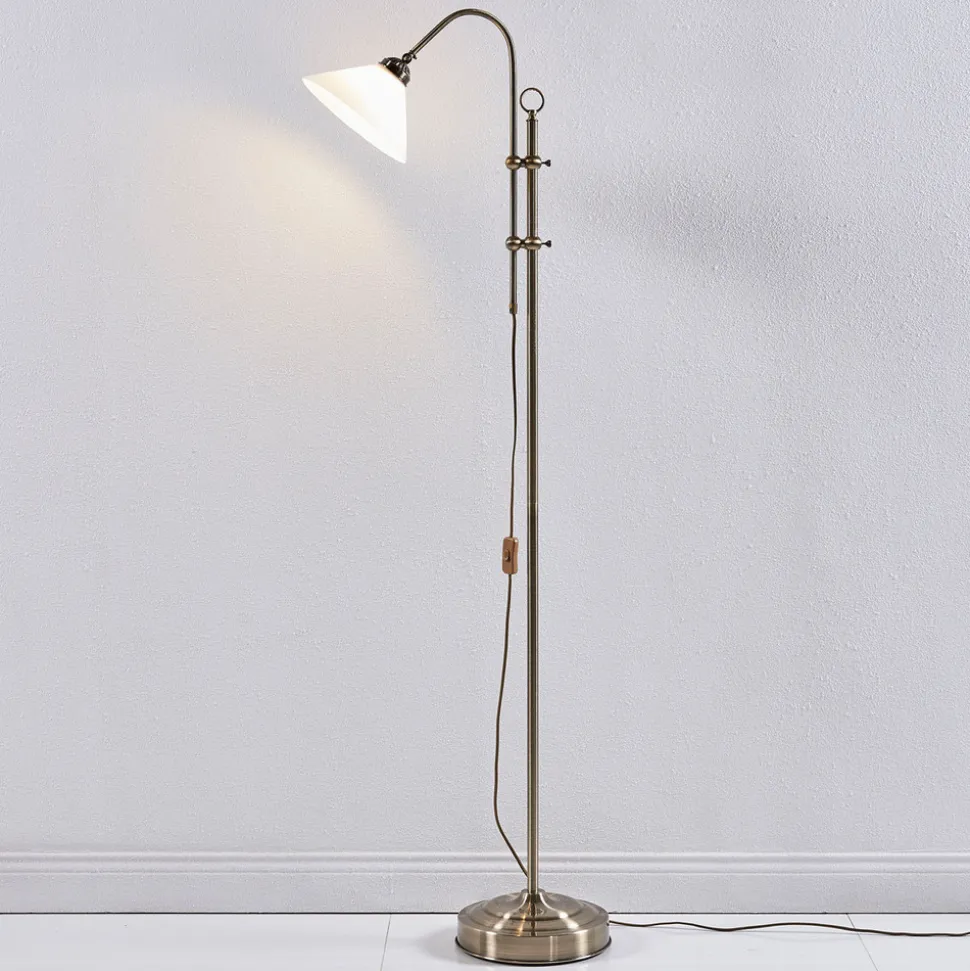 Lindby gulvlampe Otis, antikk messing, glass, 170 cm, E27