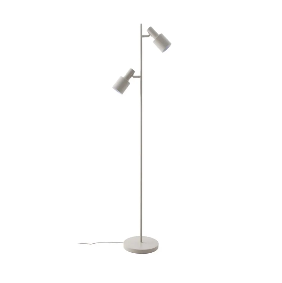 Smal Ovelia gulvlampe med to justerbare skjermer Gulvlampen Ovelia er en vakker lyskilde som kan brukes i en rekke ulike miljøer. Den skaper en inspirerende atmosfære, enten det er på kontoret eller i stuen. Med sitt iøynefallende design og sin diskrete farge er den et blikkfang i ethvert rom. De to lampeskjermene er justerbare, slik at du kan tilpasse vinkelen på lyset som sendes ut. Ovelia slås av og på ved hjelp av fotbryteren som er integrert i kabelen.